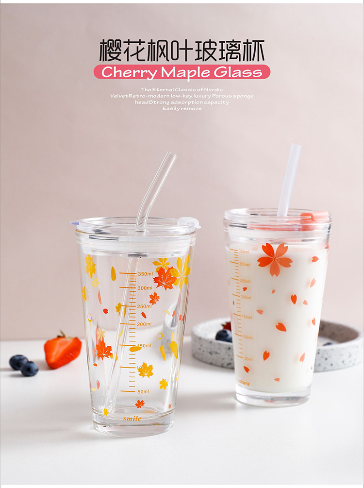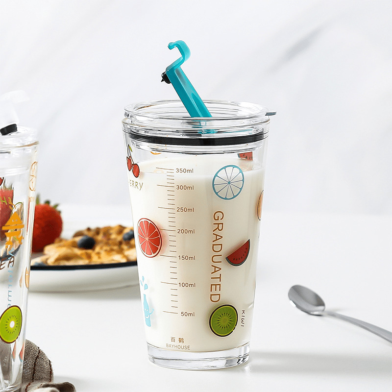 成人刻度玻璃杯吸管水杯ins網紅創意果汁杯早餐杯帶蓋便攜牛奶杯