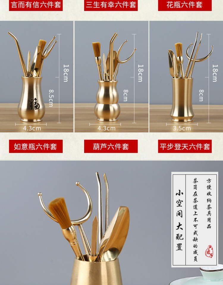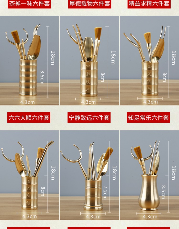 茶道六君子套裝功夫茶具配件黃銅6君子大全泡茶工具茶洗茶刀茶針