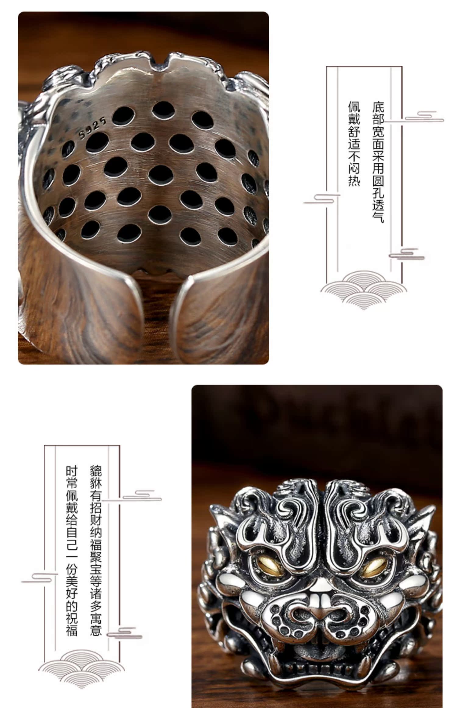 奢遇招財貔貅戒指男 純銀 潮人手工復古天祿指環單身個性小眾設計