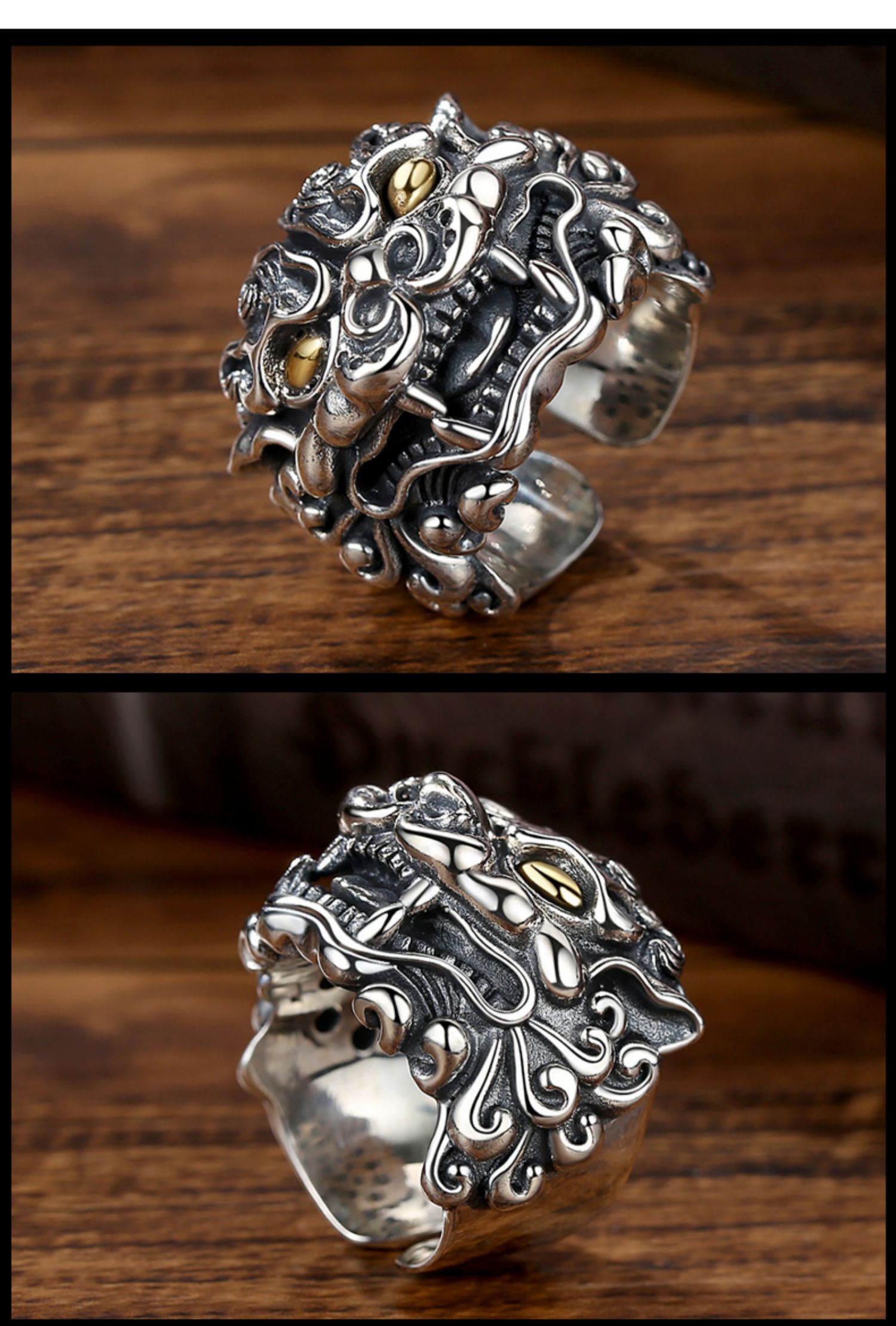 奢遇復古999足銀霸氣龍男個性戒指