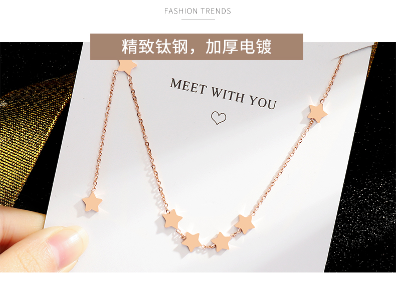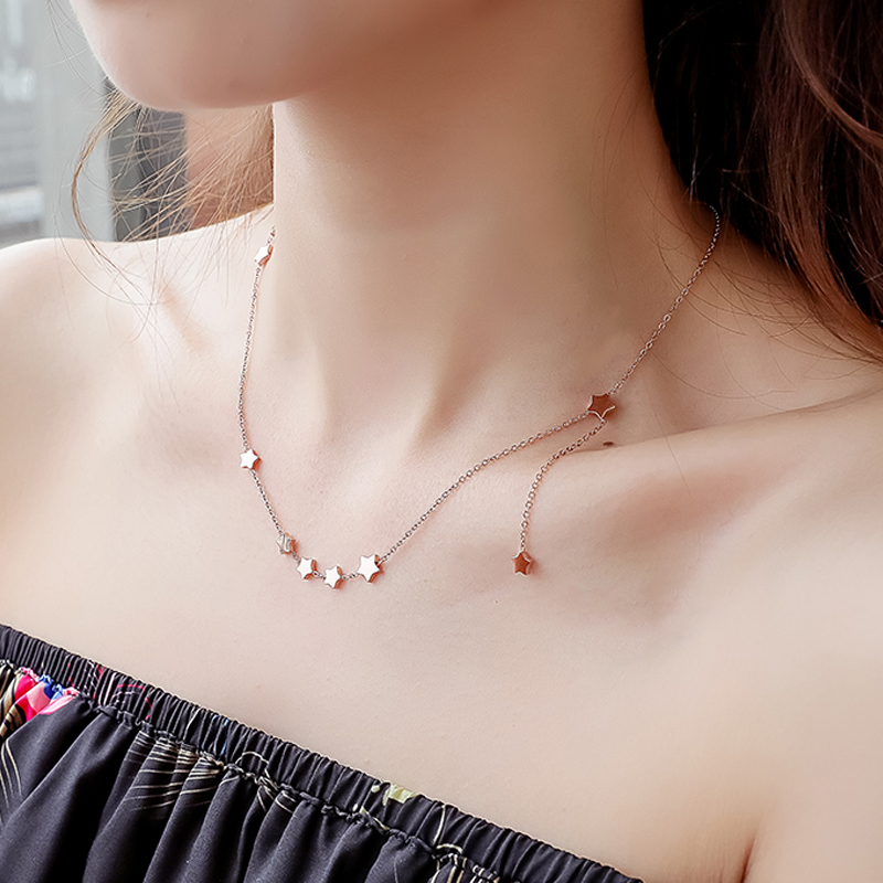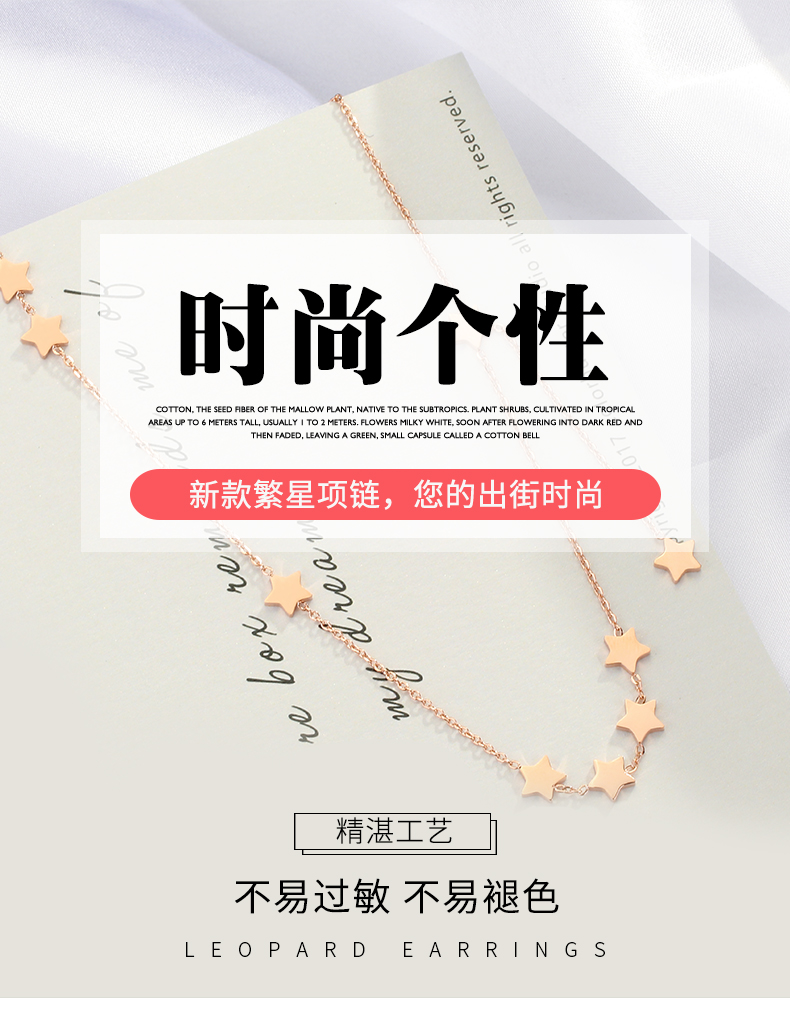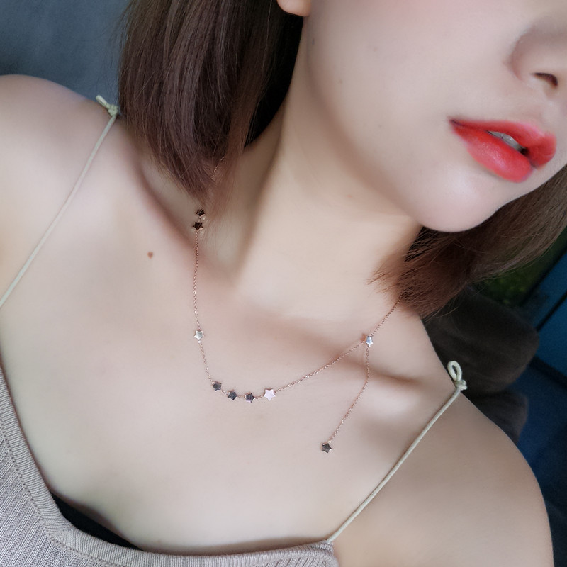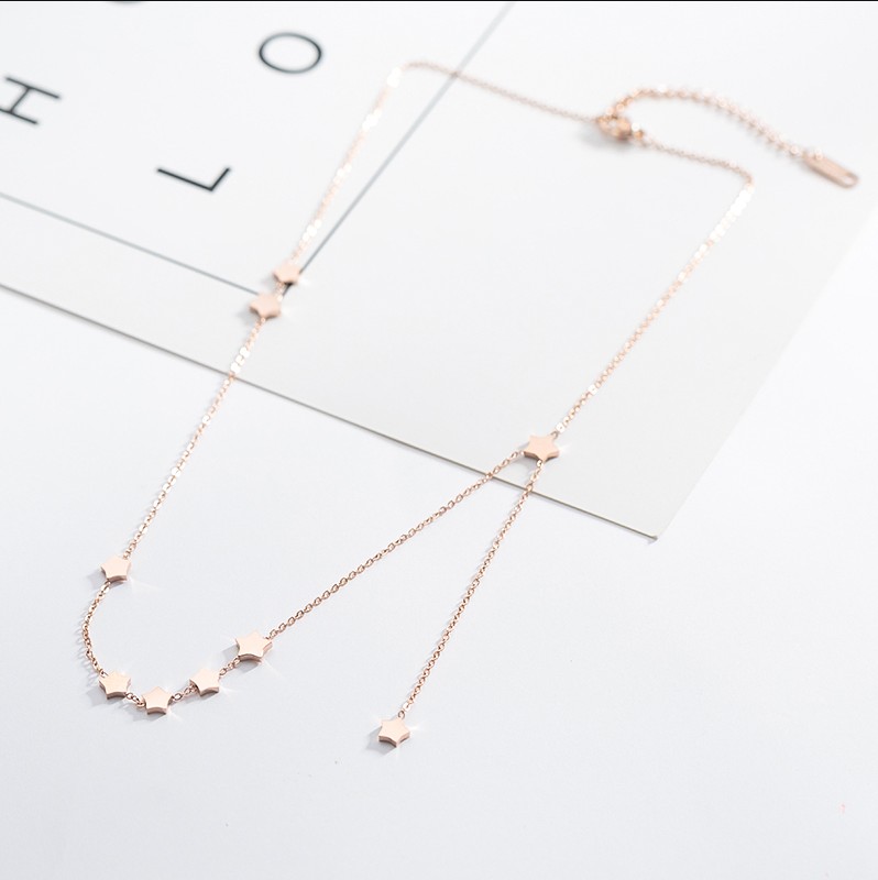 鈦鋼設計感字母雙層五角星女鎖骨鏈