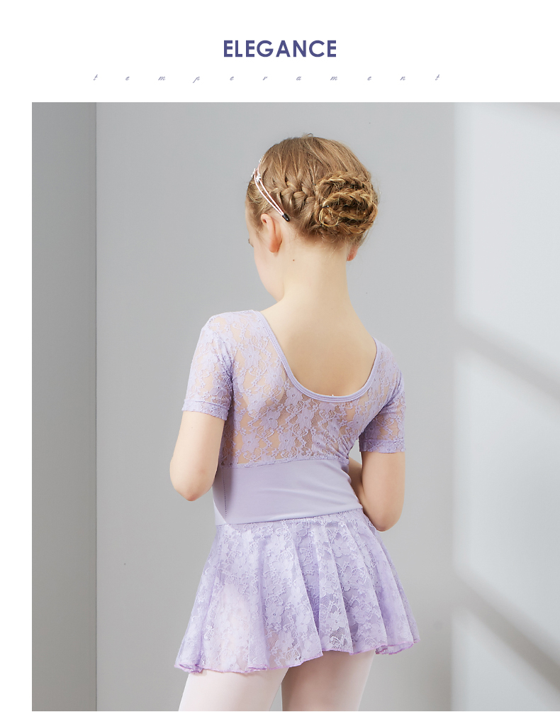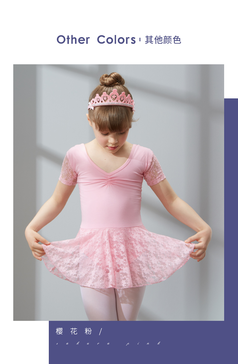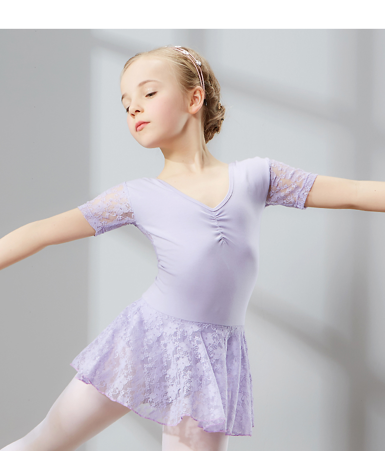 咔萌琪兒童舞蹈服女童秋季芭蕾舞裙短袖練功服拉丁考級幼兒演出服