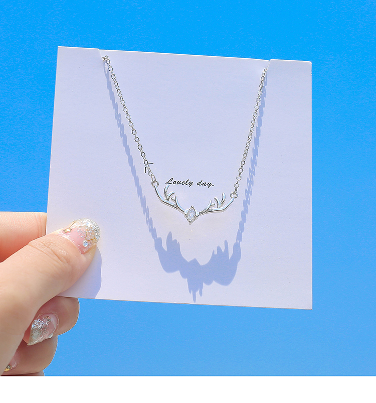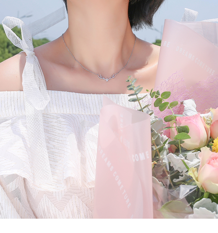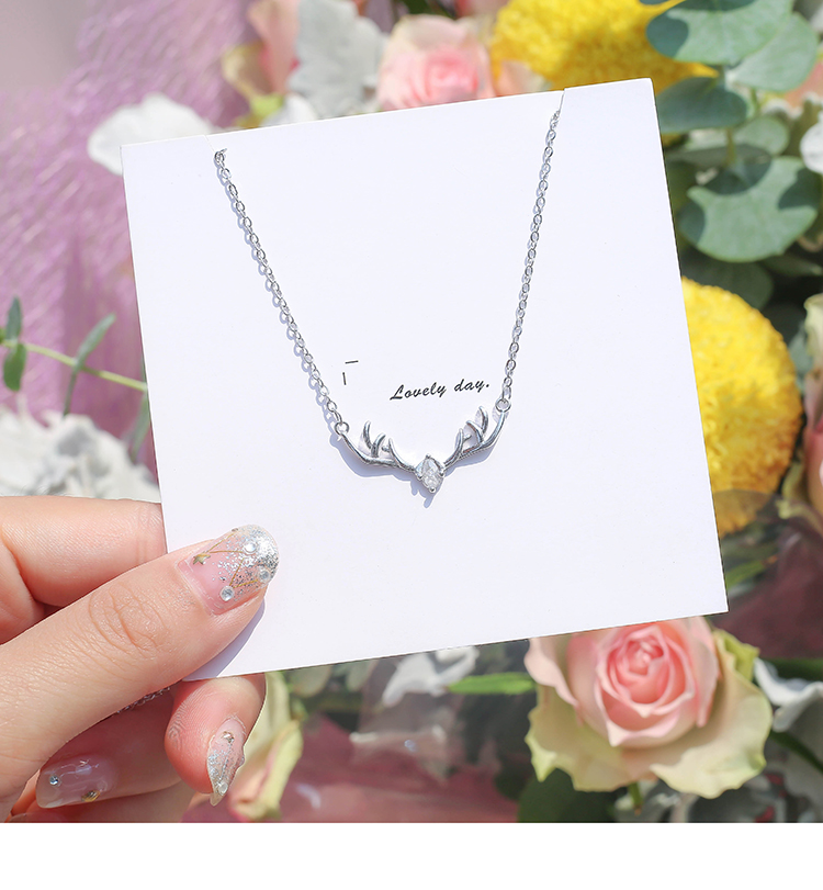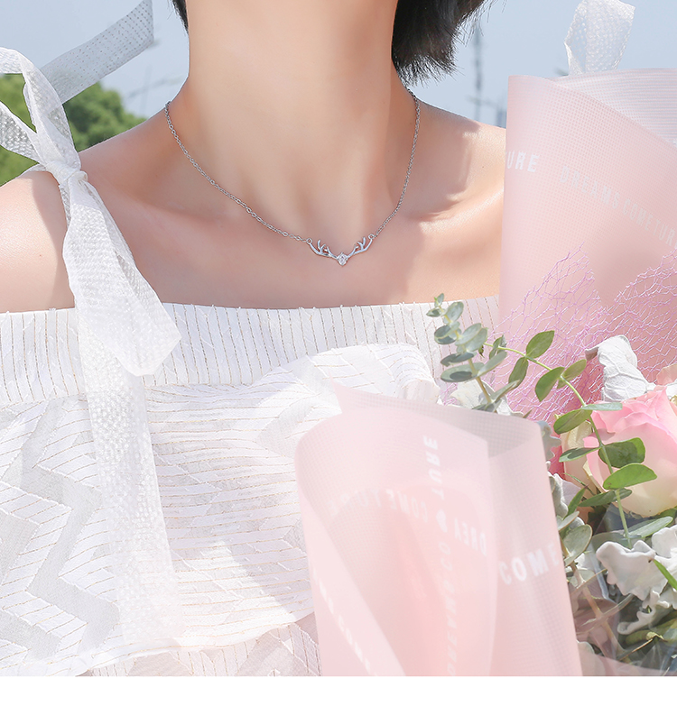 s925純銀一鹿有你項鏈女鹿角鎖骨鏈網紅頸鏈情人節女友禮物潮時尚