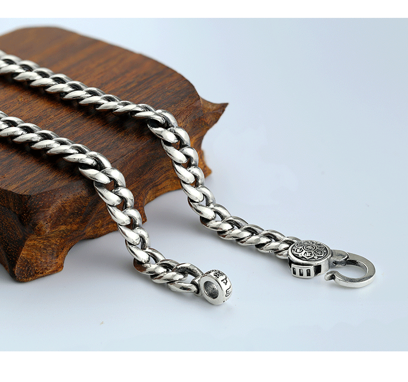 鏤心泰銀平安紋間六字箴言復古項鏈
