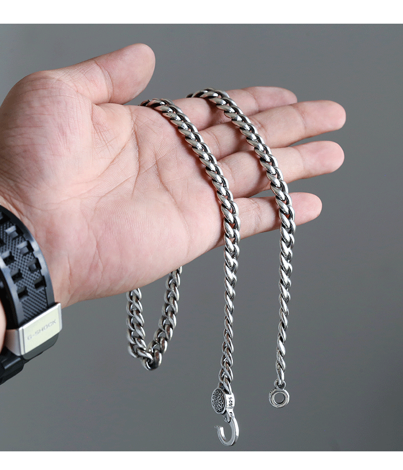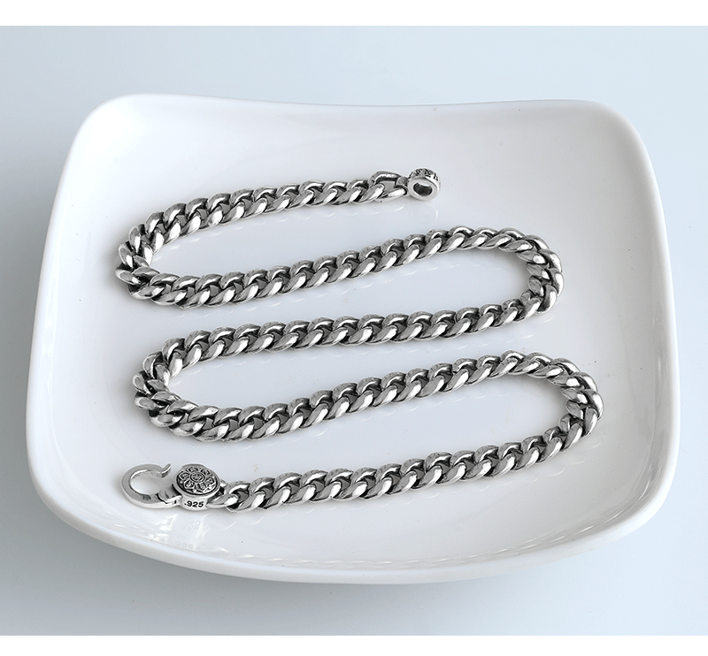 s925純銀小眾古巴項鏈韓版簡約個性男士單身復古飾品隨身霸氣潮人