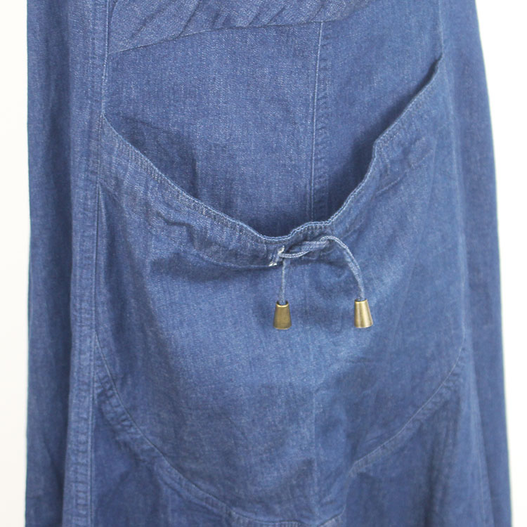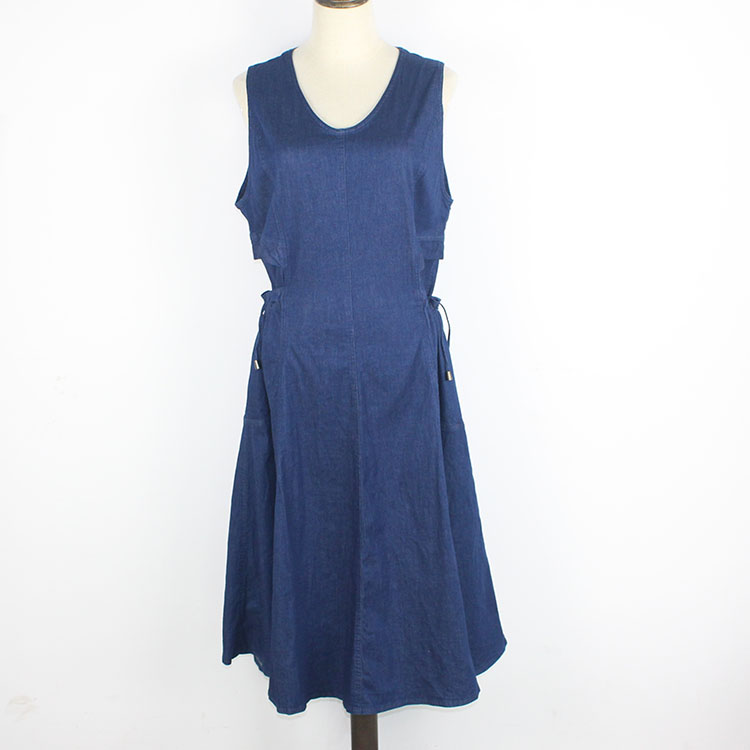 原D外貿尾貨純棉兩側口袋松緊休閑寬松中長款牛仔拉鏈背心連衣裙