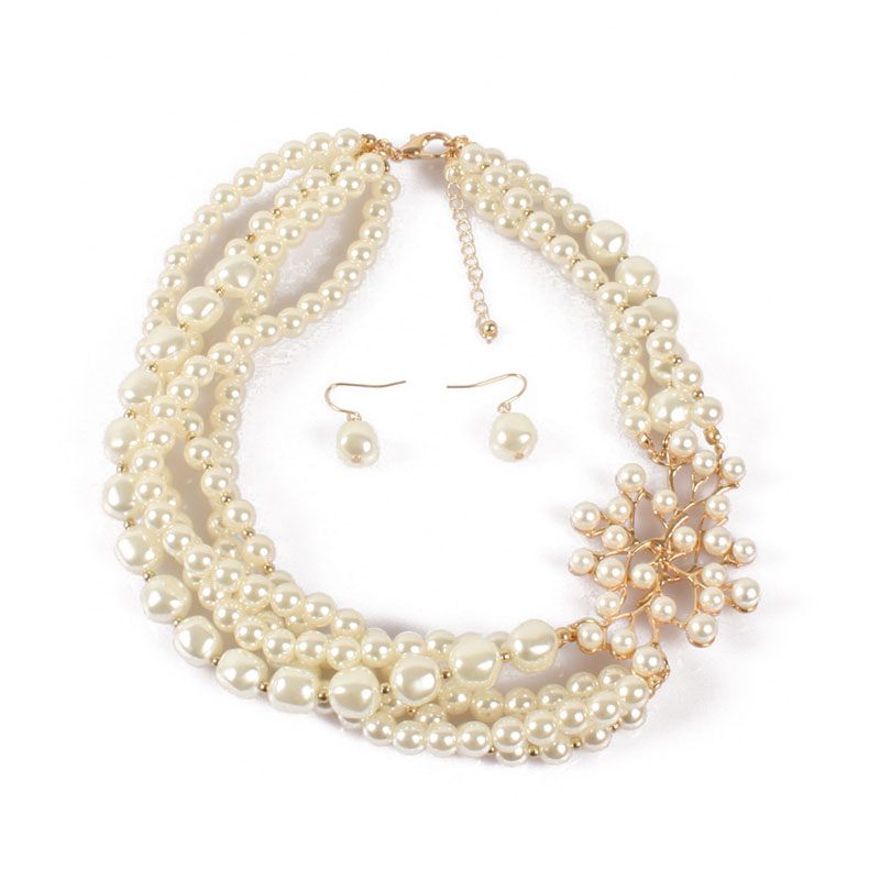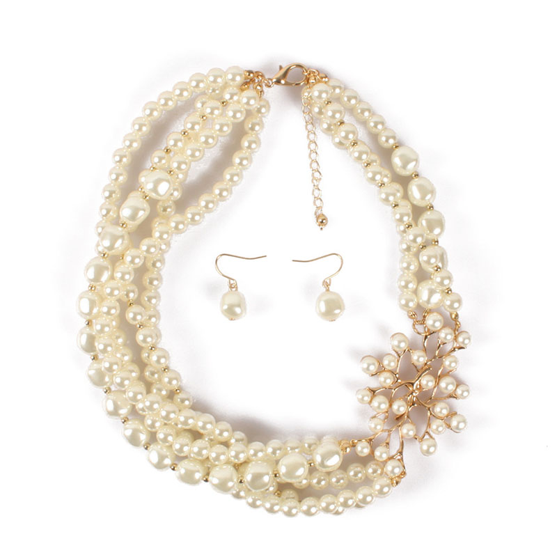 歐美珍珠項鏈手鏈三件套女水鉆耳環