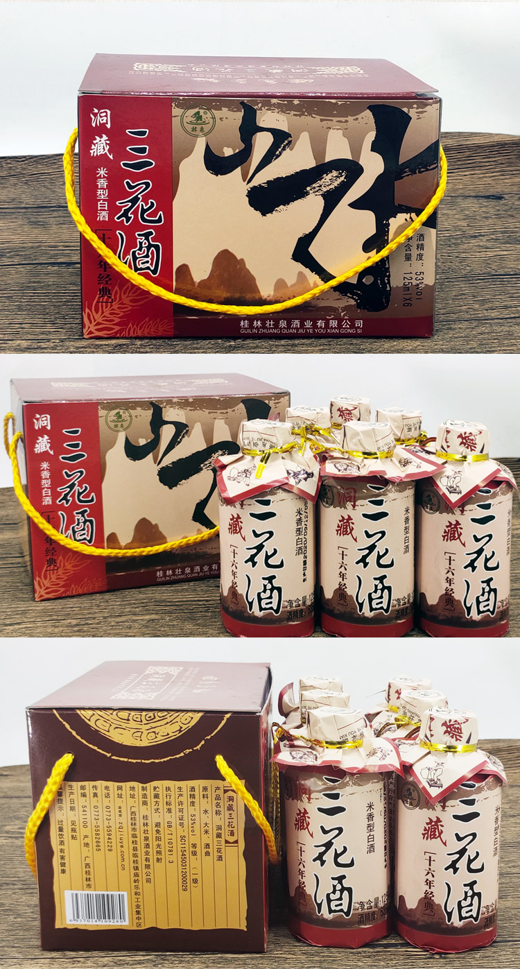 廣西特產桂林三花酒壯泉洞藏三花酒53度125ml*6瓶禮盒陳釀米香型