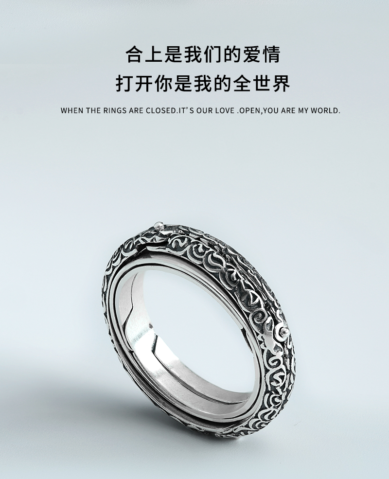 打開變成天文球戒指925純銀情侶十六世紀德國復古球形宇宙魔戒女
