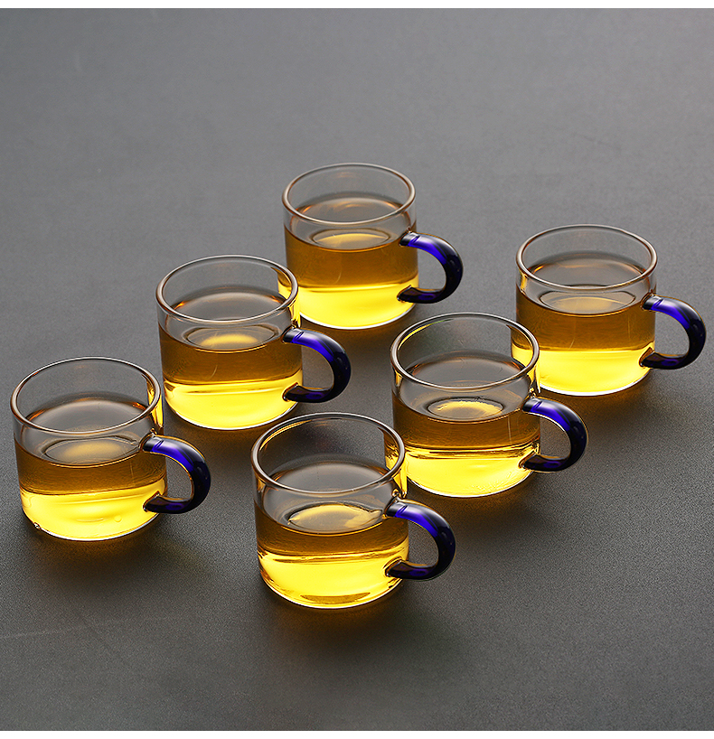 玻璃小茶杯帶把6只套裝功夫茶道杯