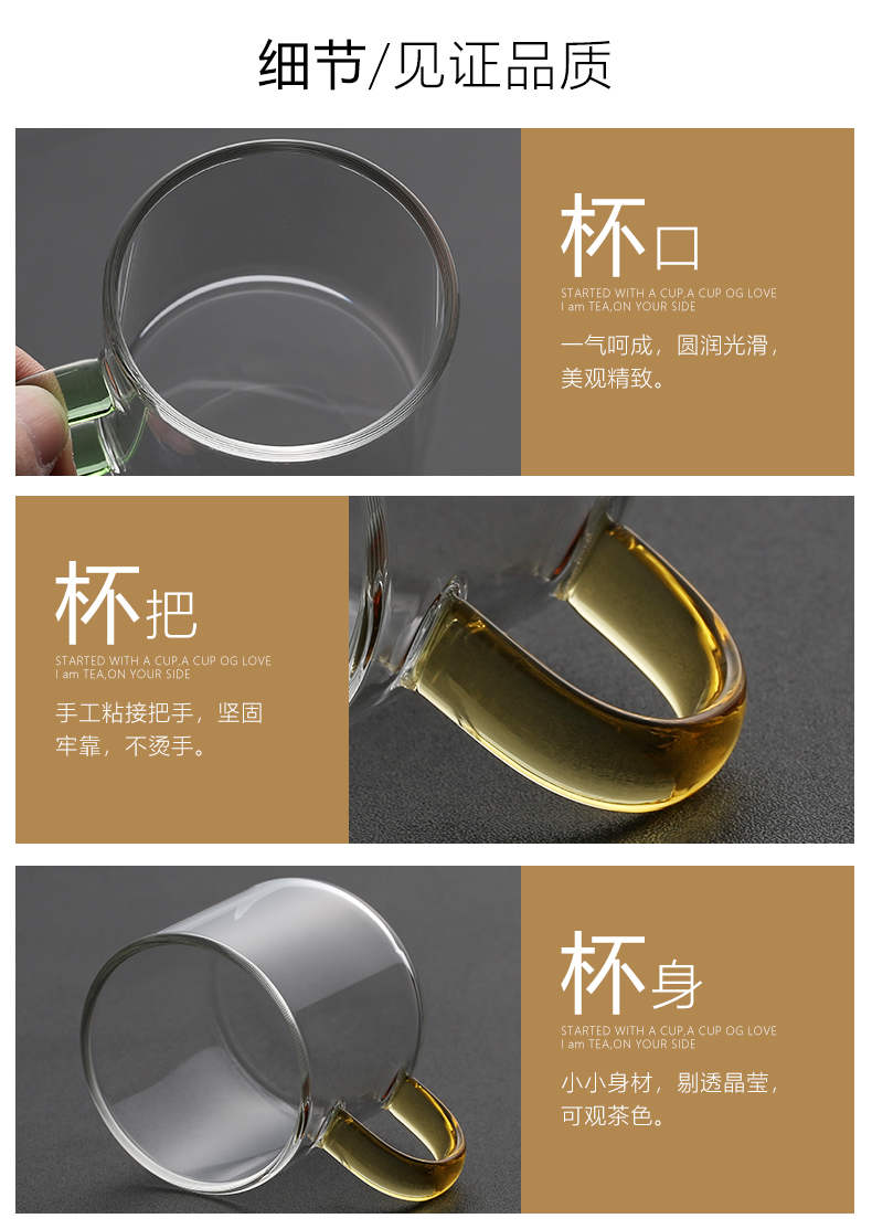 加厚耐熱玻璃品茗杯子小茶杯帶把杯功夫茶具喝茶耳杯茶碗家用套裝