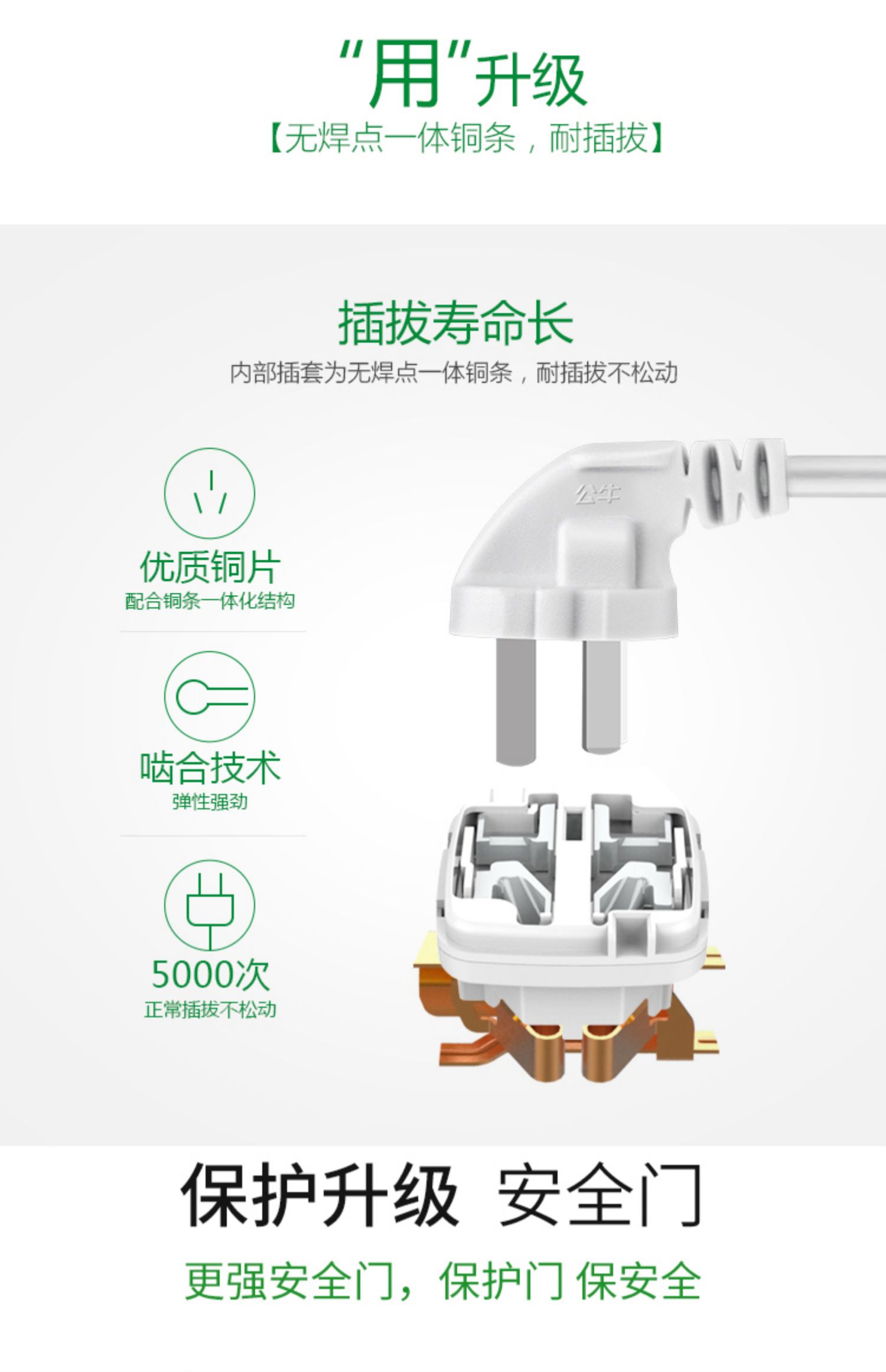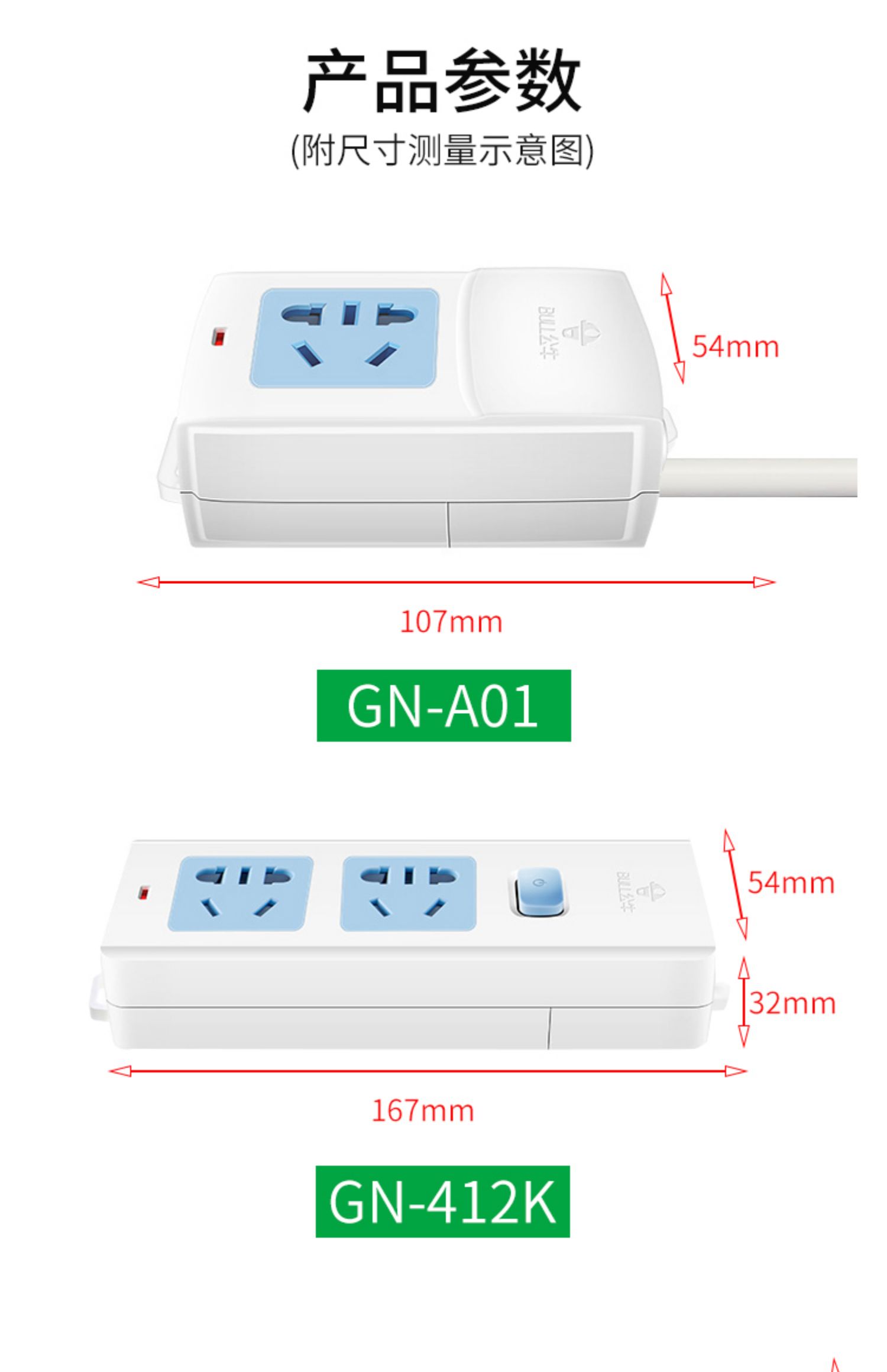 公牛2腳兩項孔接線板延長帶線插頭