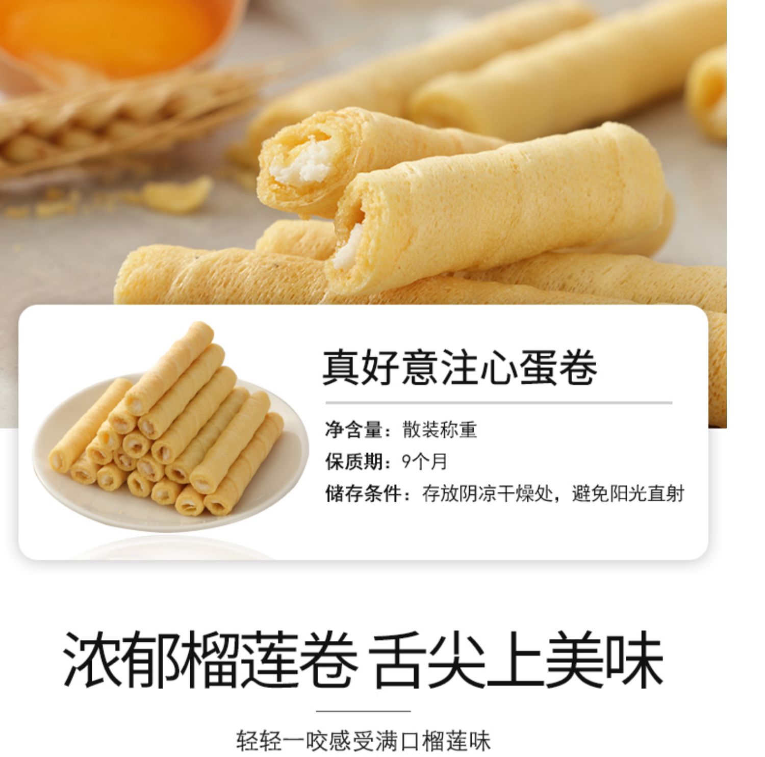 真好意手工雞蛋榴蓮忘返注心蛋卷早餐食品膨化餅干零食42支小包裝