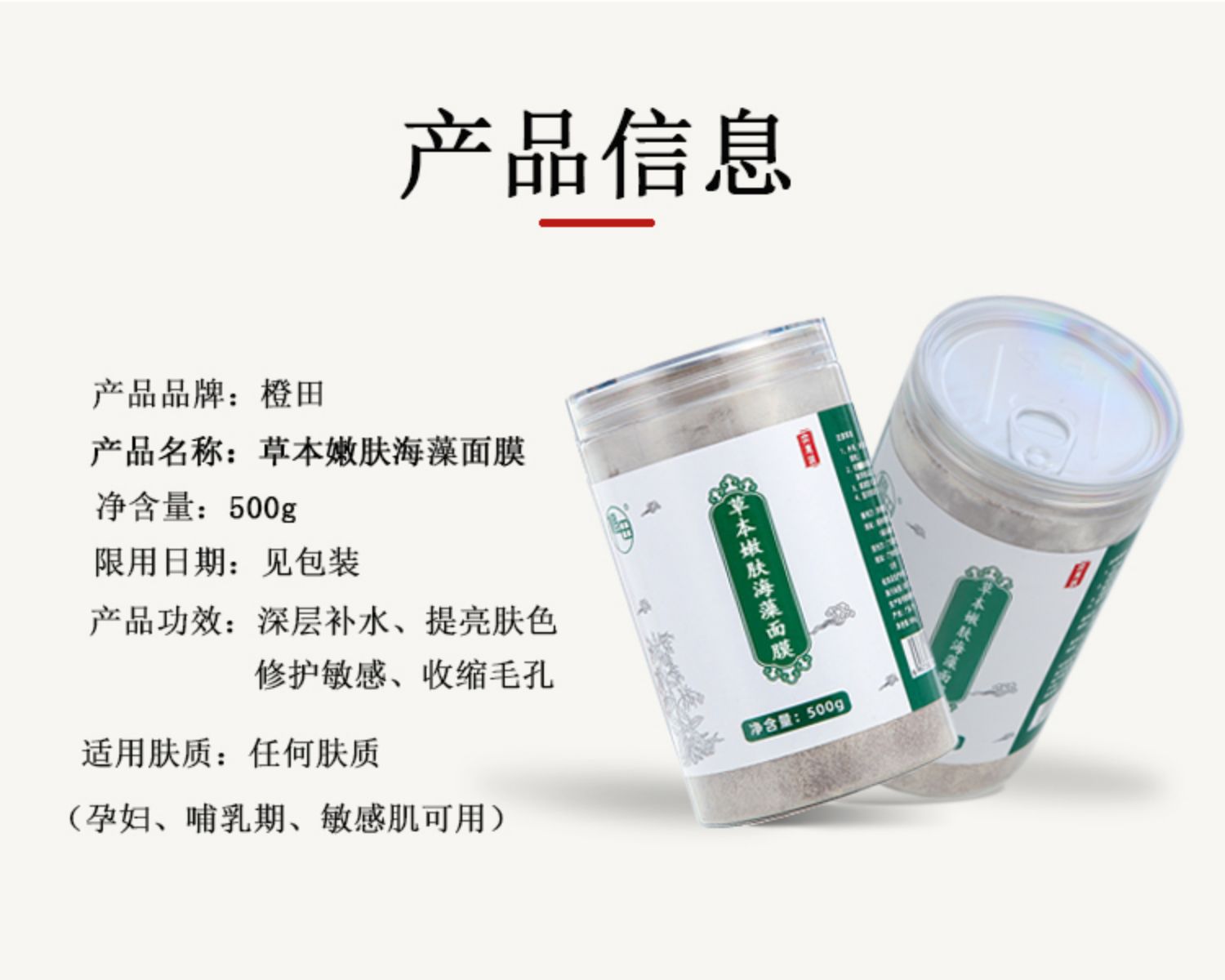 海藻面膜小顆粒草本女 泰國天然純補水保濕美容院海澡泥孕婦可用