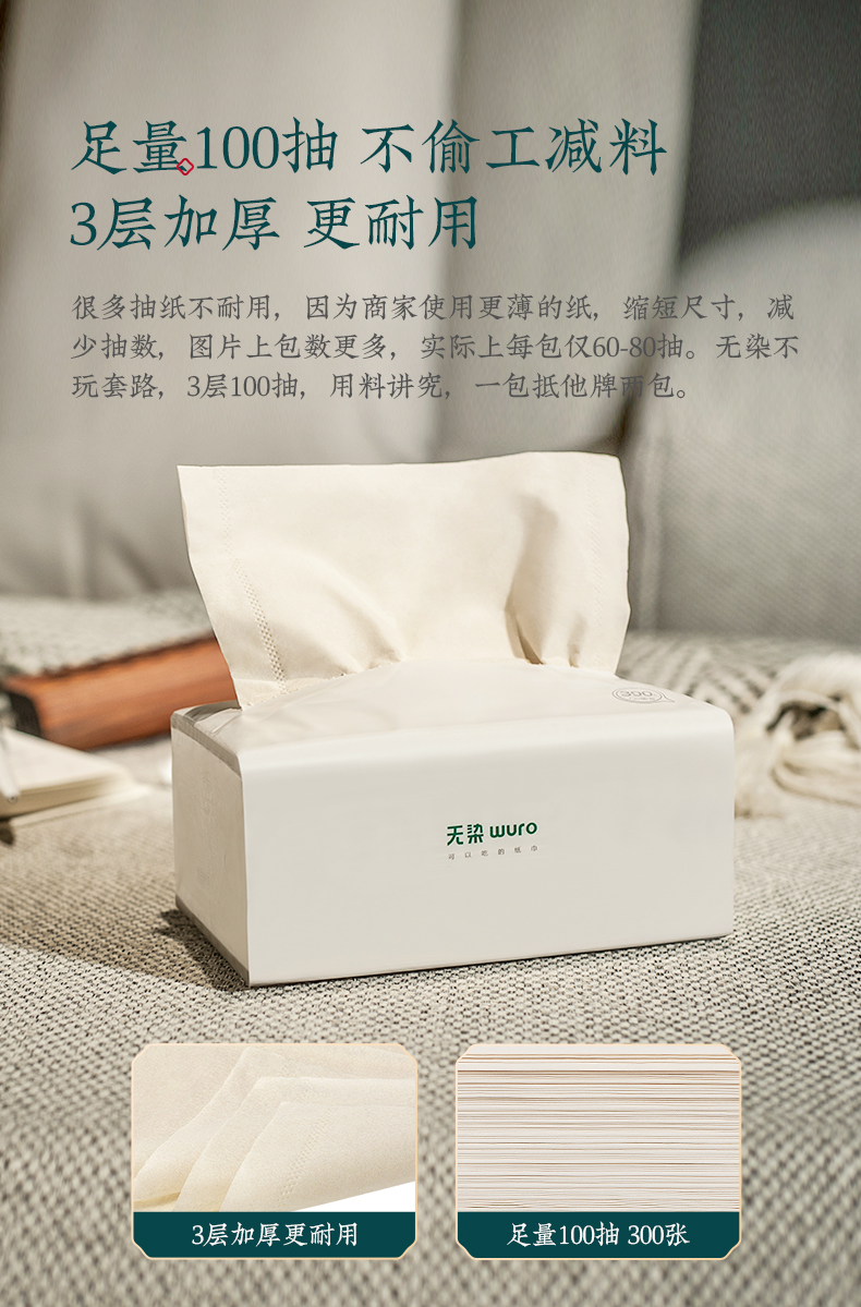 無染竹纖維本色紙巾抽紙M碼整箱批餐巾紙面巾紙家用實惠裝3層24包