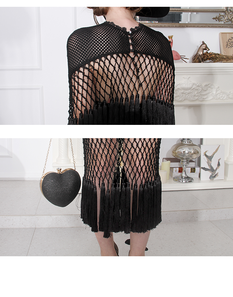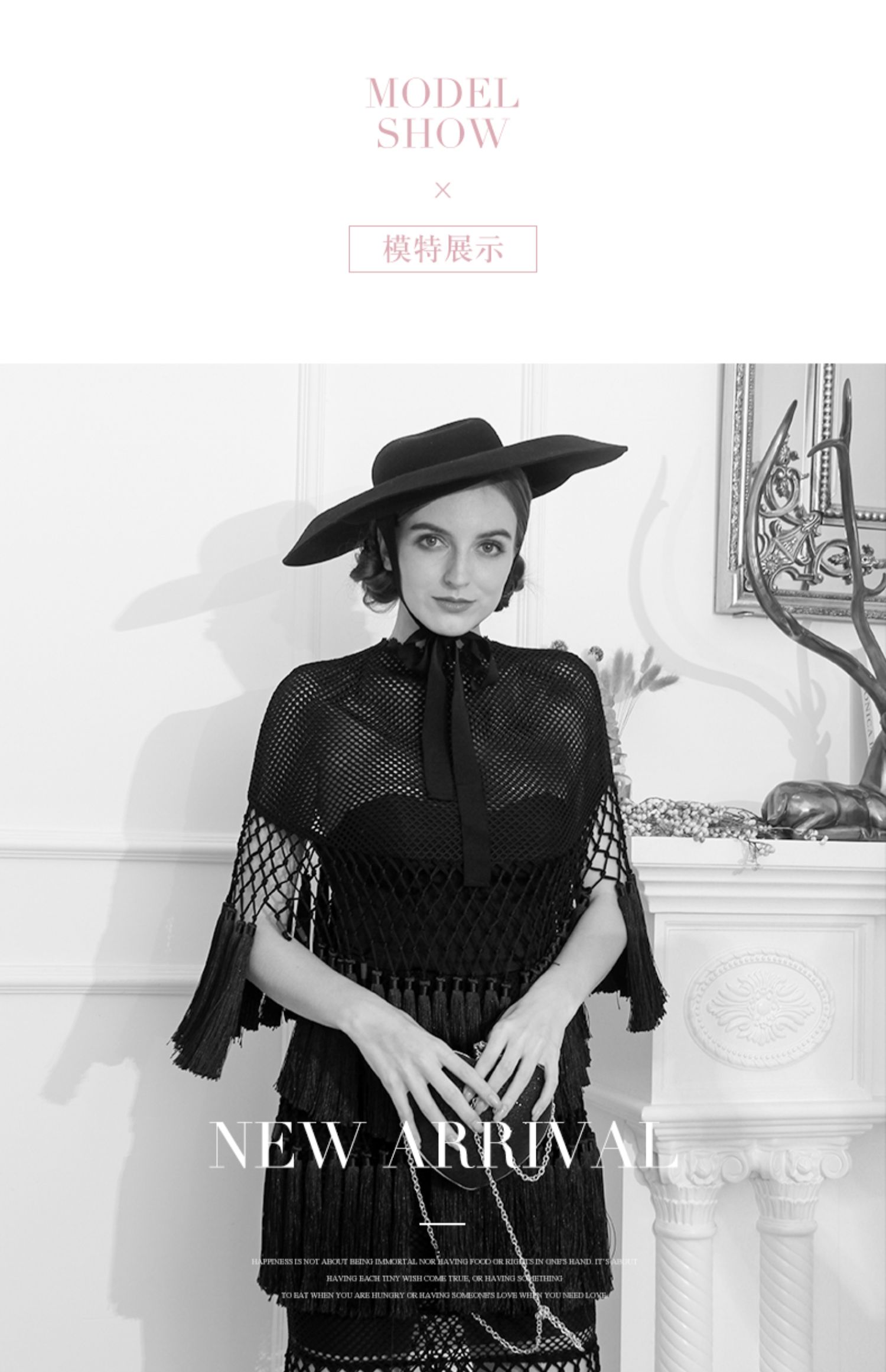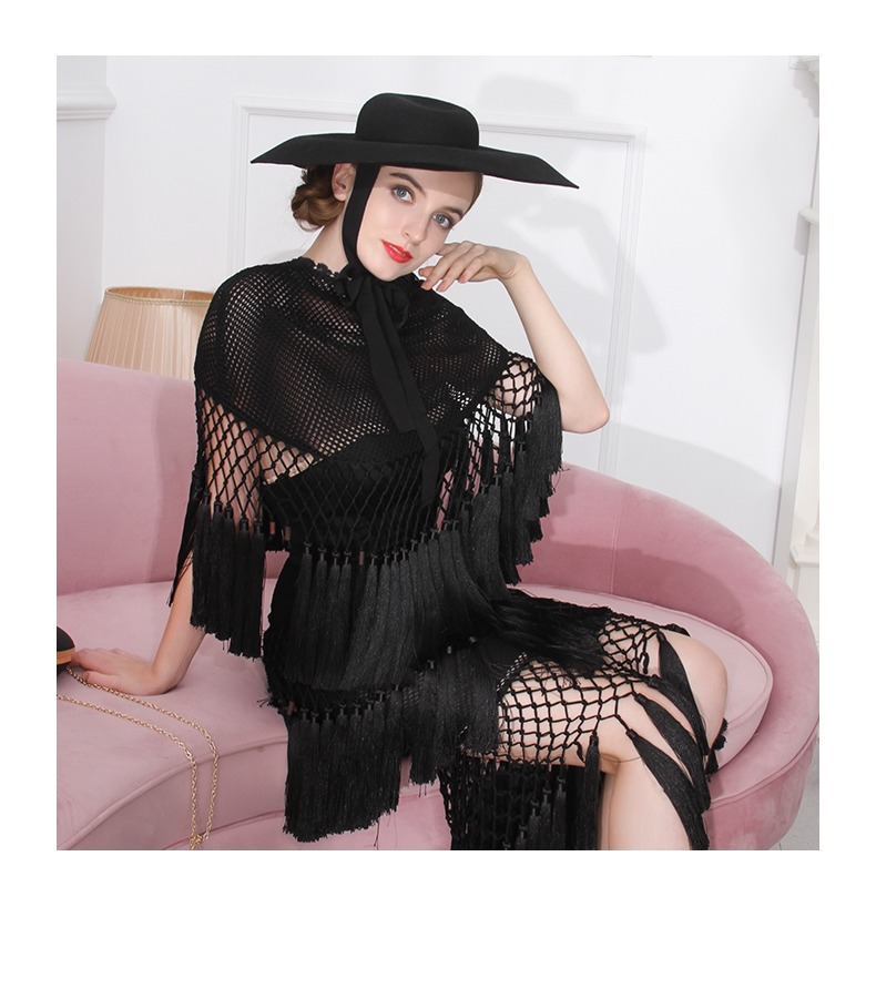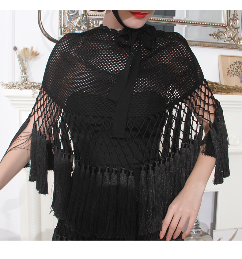 LEEDY&ME廠家直銷抹胸披肩式流蘇編織縷空禮服裙短袖大小宴聚會