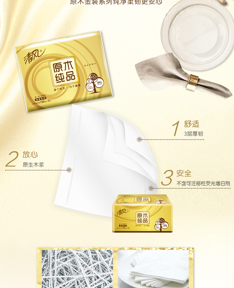 清風抽紙巾家用實惠裝餐巾紙抽原木純品抽紙衛生紙旗艦店金裝12包