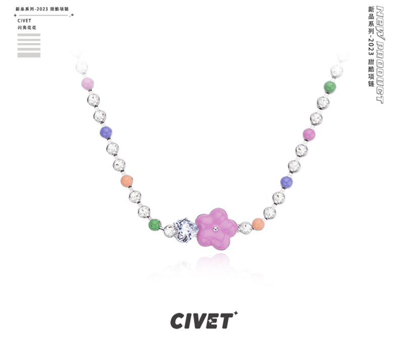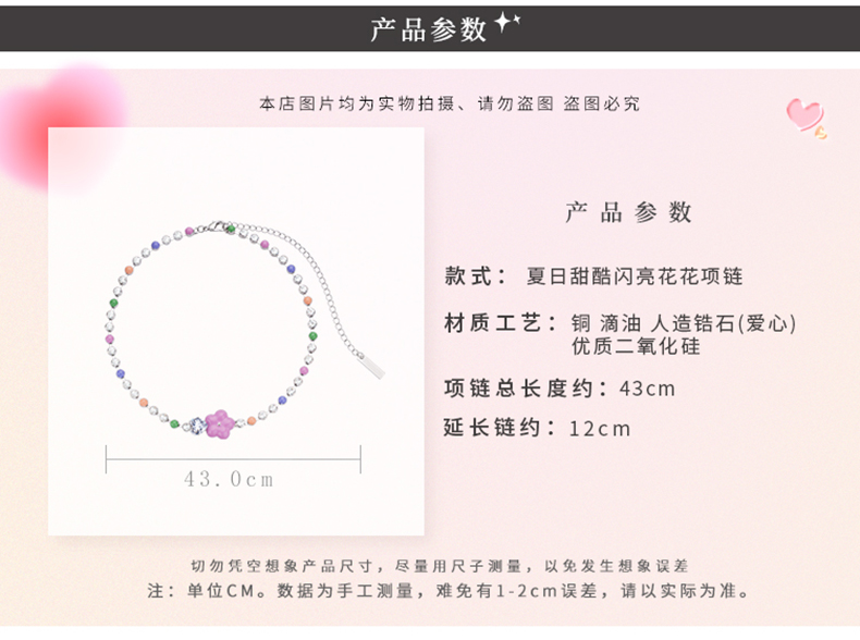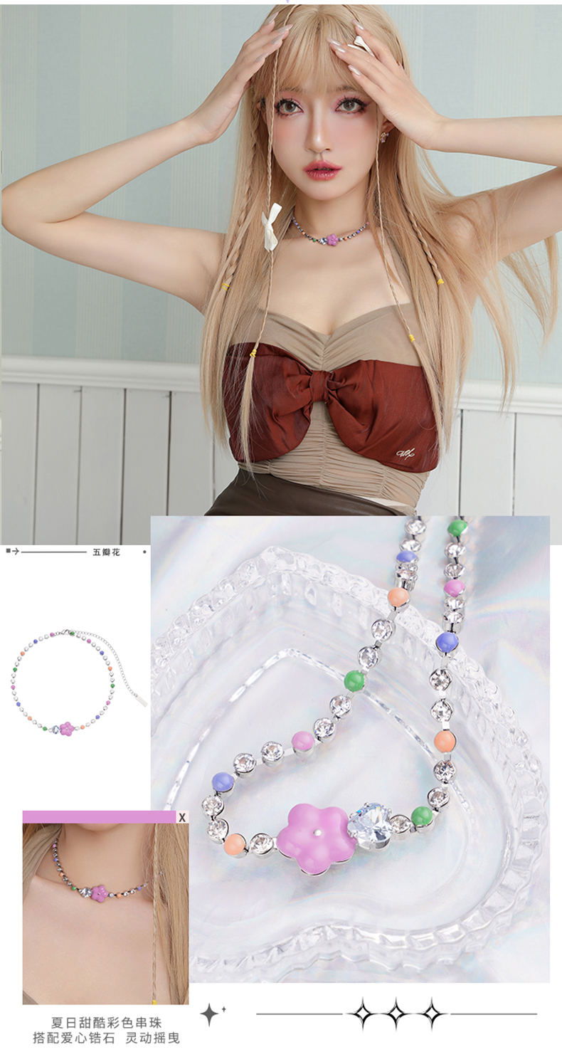 夏季彩色花花項鏈少女可愛甜美小眾設計配飾簡約多巴胺穿搭鎖骨鏈
