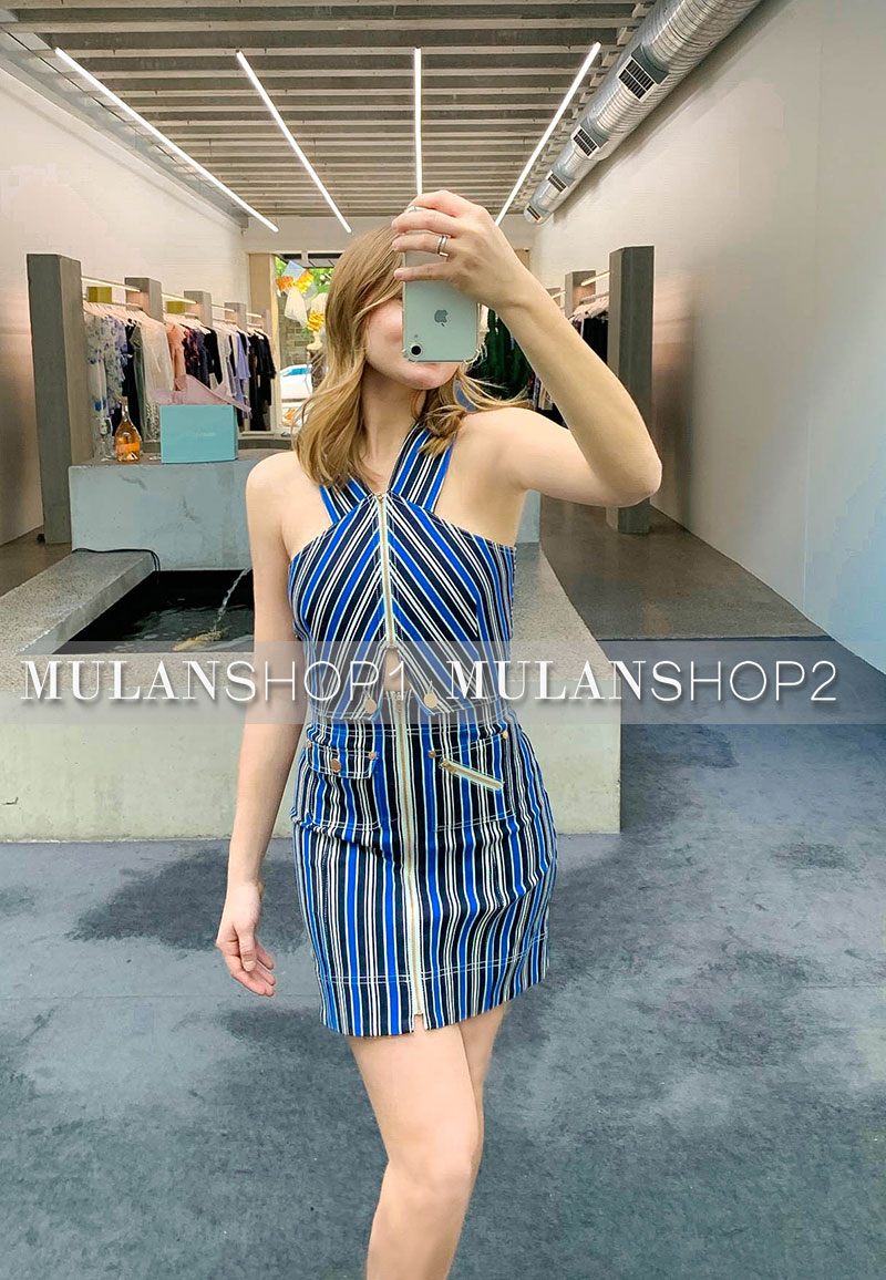 【清貨折68】Alice mccall秋新款牛仔時尚條紋拼色背部交叉連衣裙