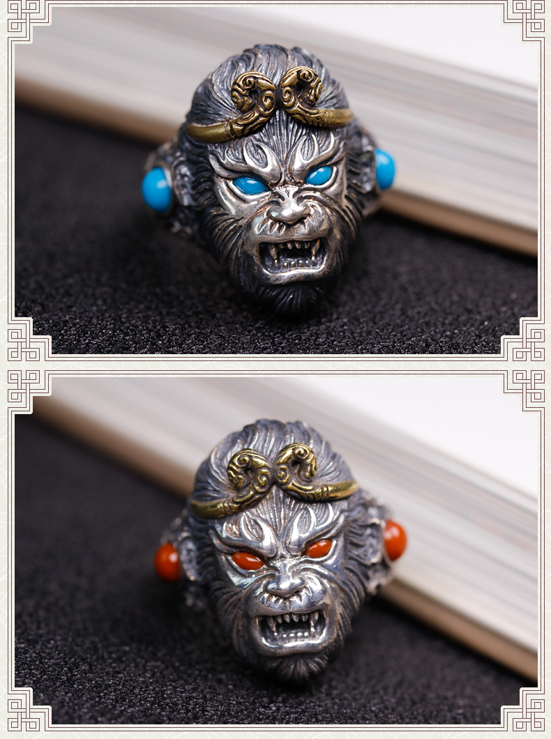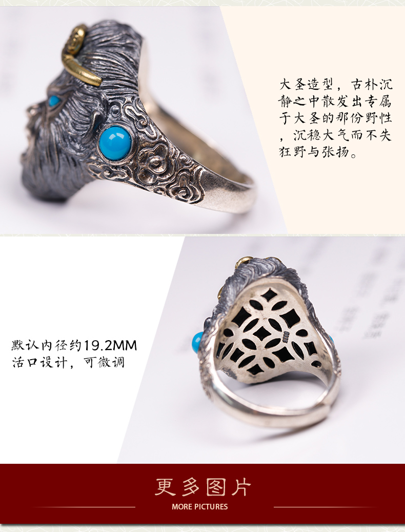 京城一品堂S925銀齊天大圣孫悟空斗戰勝佛戒指緊箍咒男士潮流霸氣