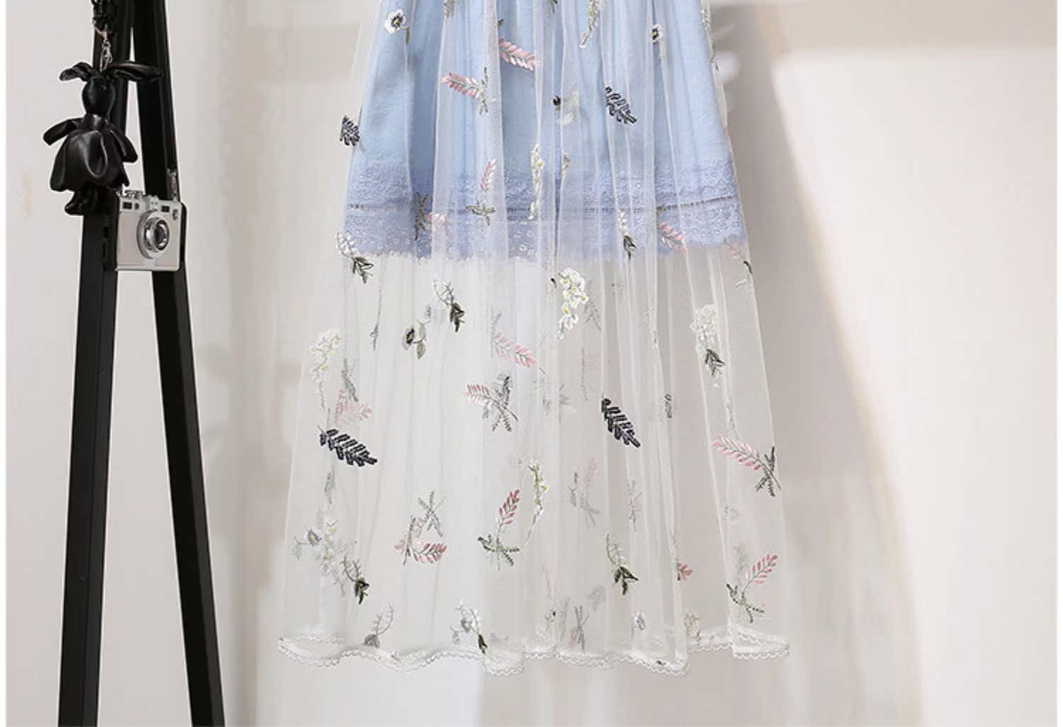 卡莎布蘭卡夏季甜美俏皮小清新襯衫配網紗裙時尚兩件套CME252012