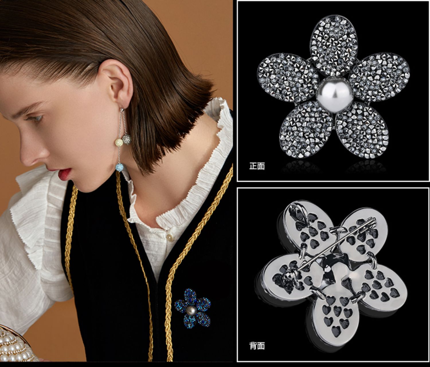 法國永恒歐美風胸針高檔女 服裝配飾品開衫別針扣奧地利水晶胸花
