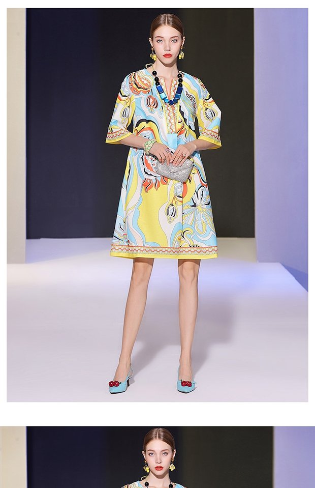爆款夏季新款女裝棉麻寬松休閑個性圓領中袖時尚薄款印花連衣裙