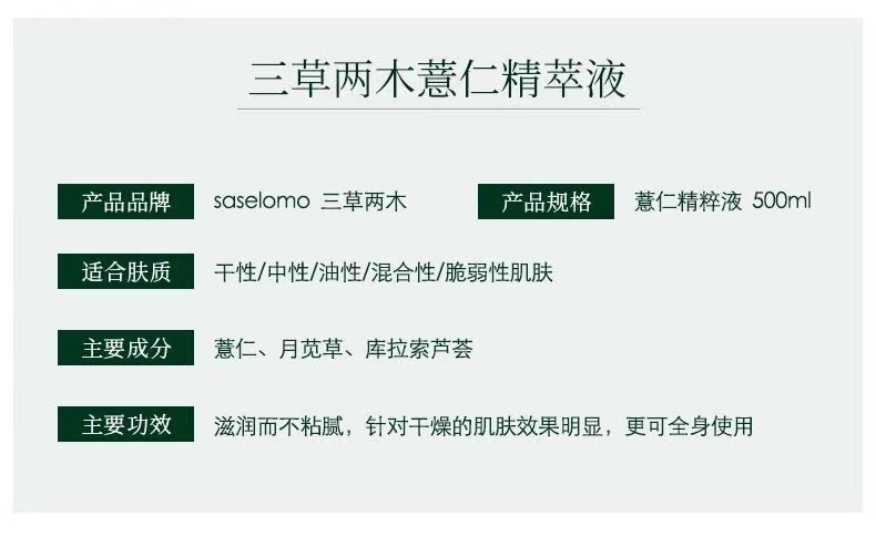 三草兩木薏仁精粹液500ml補水保濕爽膚水肌膚調理化妝水官方正品