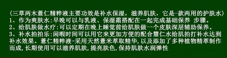 39¥ CZ0001 Y93QWcGlYoE¥ https://m.tb.cn/h.5SDkysf 三草兩木薏仁精粹液500ml補水保濕爽膚水肌膚調理化妝水官方正品 --------------------- 三草兩木薏仁精粹液500ml補水保濕爽膚水肌膚調理化妝水官方正品 --------------------- 【原售價】98元 【優惠券】10元 【券后價】88元。