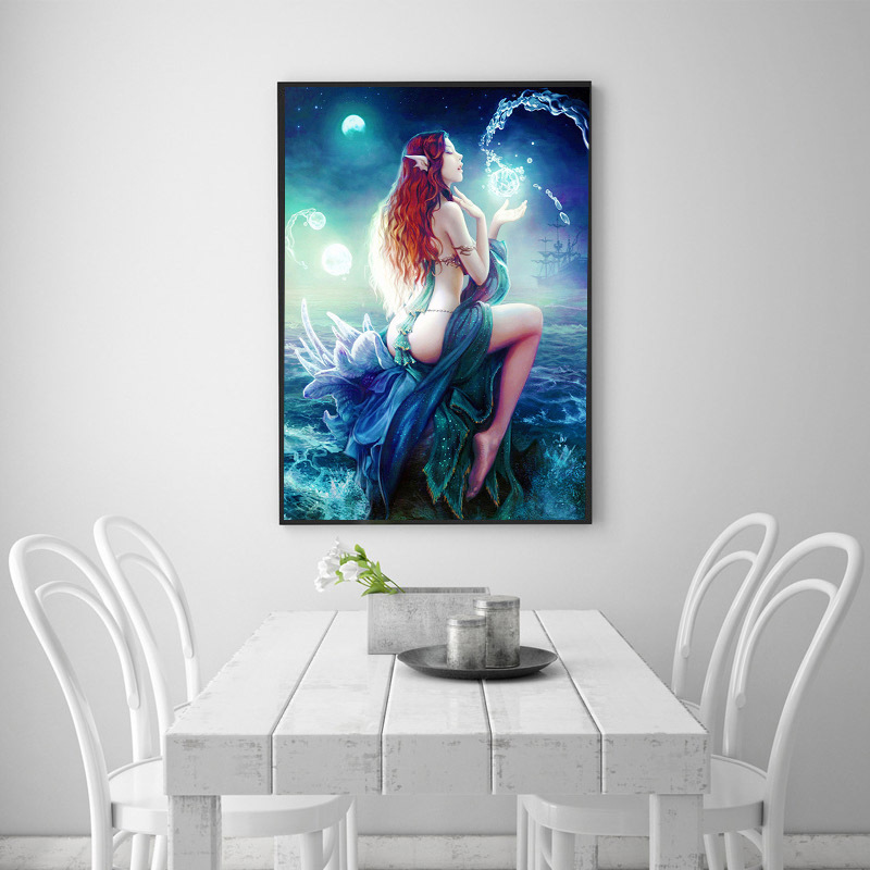 歐式5D鉆石畫2023新款美人魚公主滿鉆點貼磚十字繡臥室藝術粘磚繡