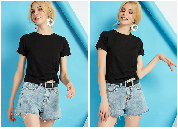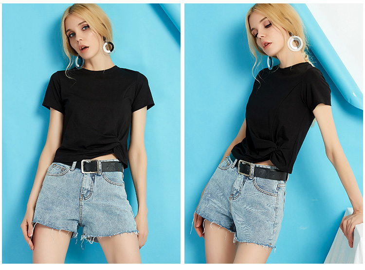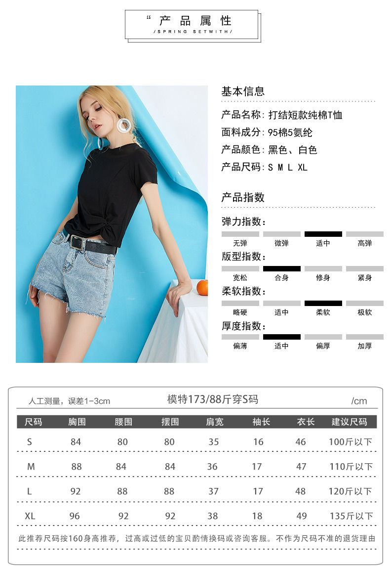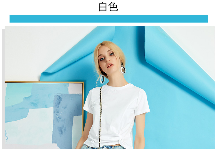 白色t恤女夏短袖高腰不規則設計感小眾純棉打結開叉純色短款上衣