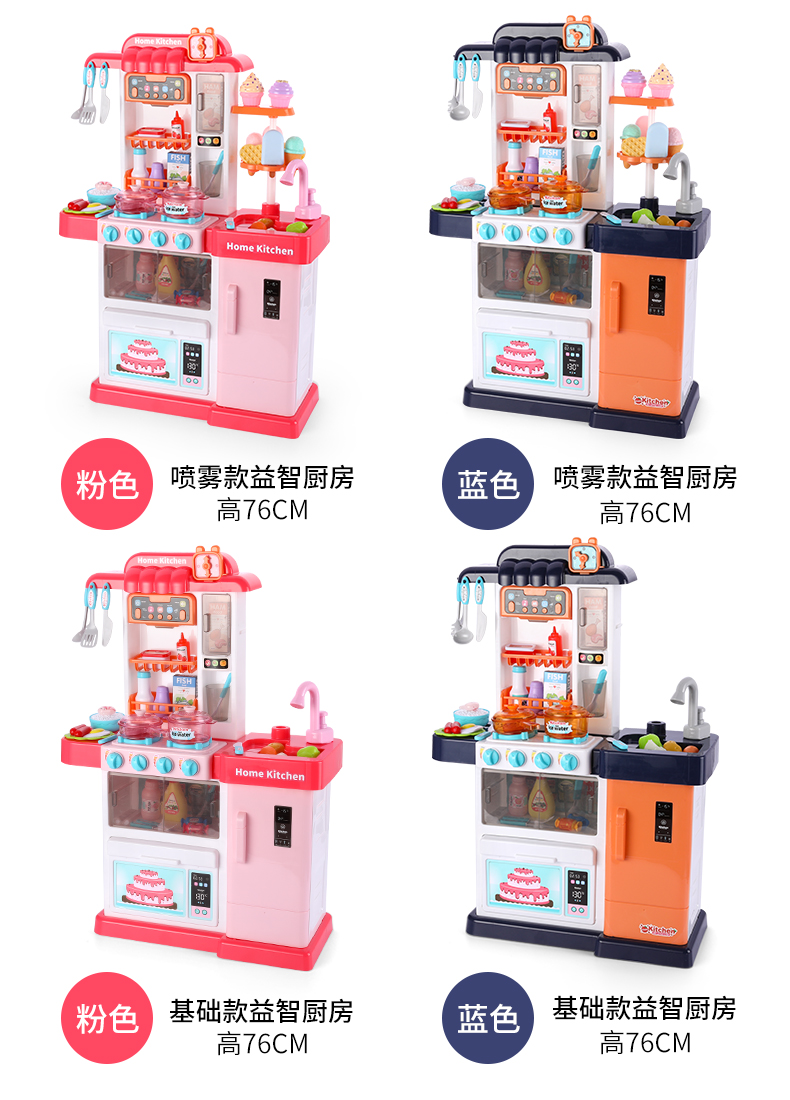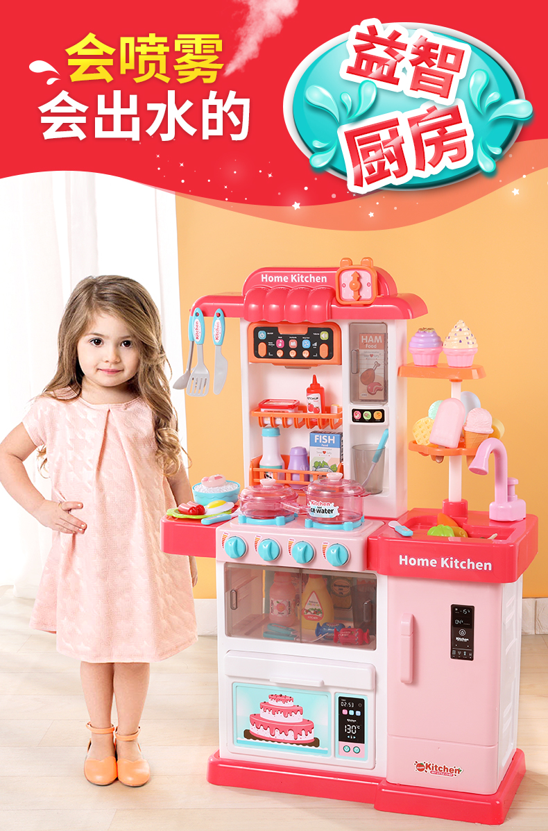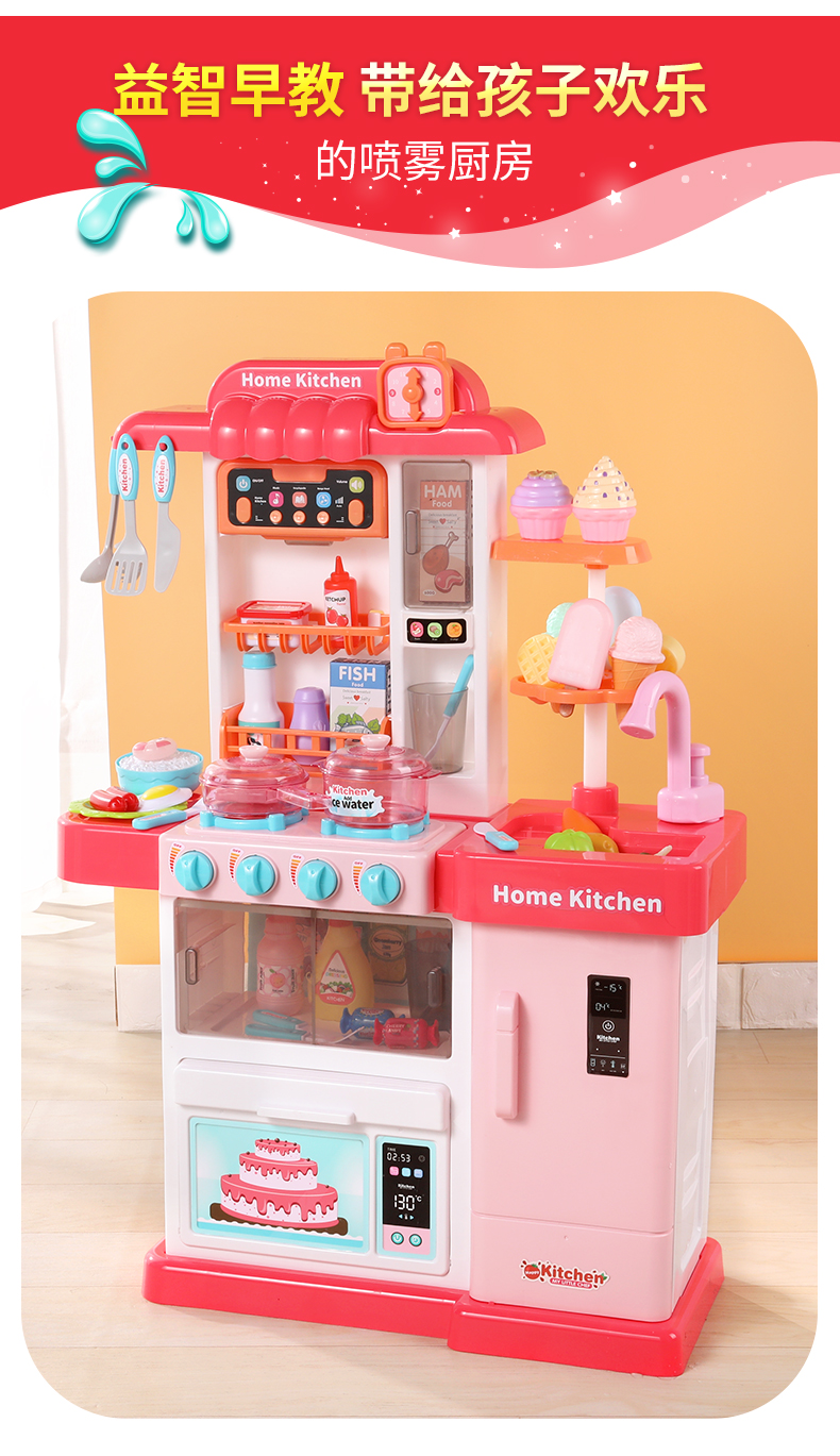 過家家兒童蒸汽廚房玩具仿真噴霧女孩廚具做飯煮飯兒歌3變色6套裝