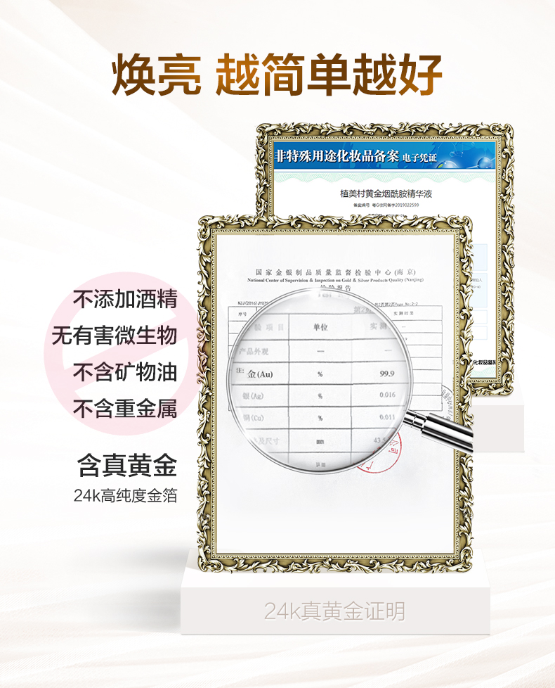 植美村24k黃金精華液煙酰胺修護緊致原液補水保濕面部精華女正品