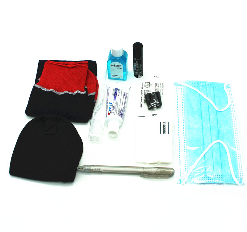 含配品包內含:漱口水 唇膏 筆 眼罩,耳塞,牙刷,牙膏 等