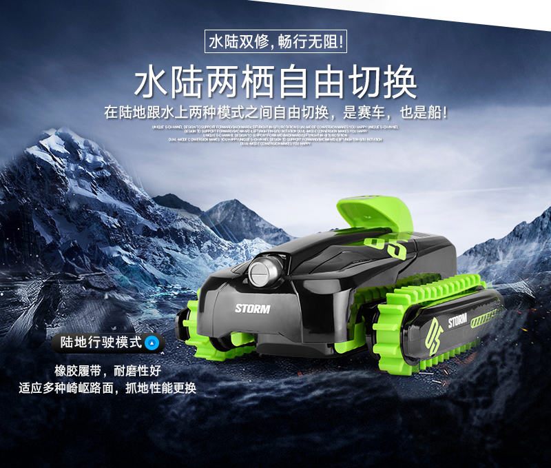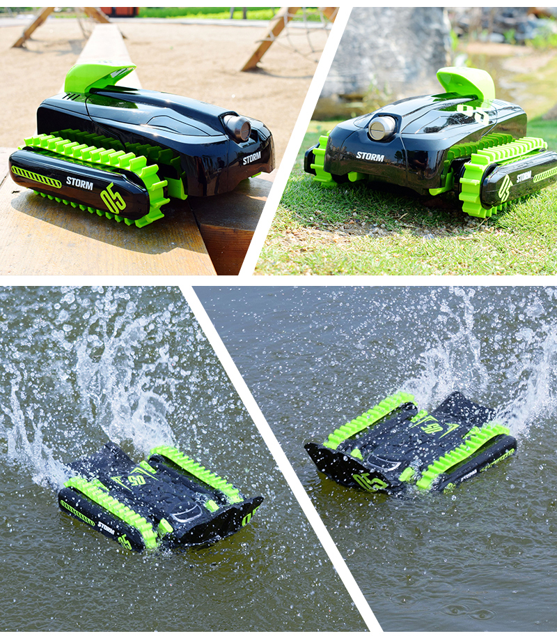 水陸兩棲四驅RC越野變形車兒童電動遙控汽車防水履帶雪地車男玩具