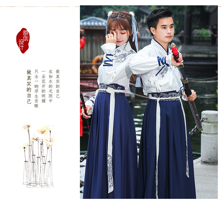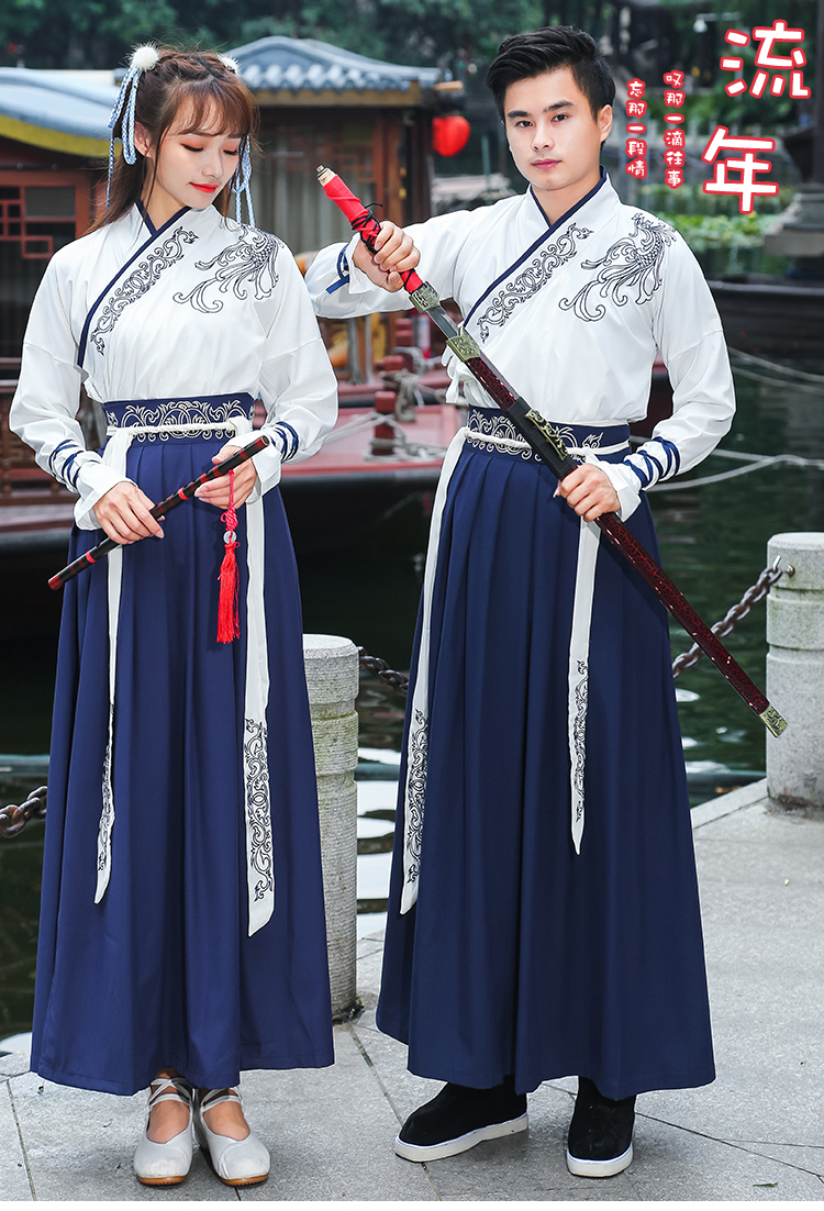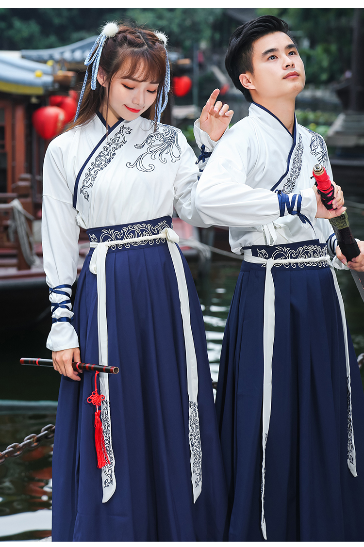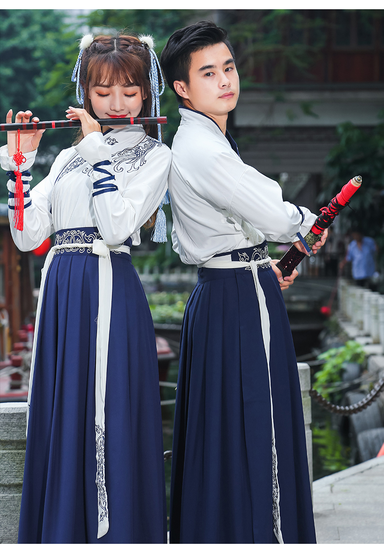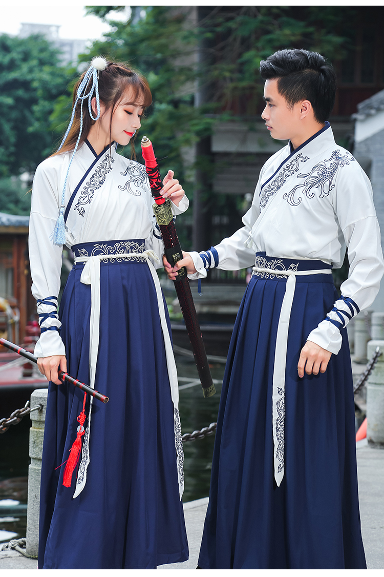 改良古風漢服女中國風漢元素武俠風超仙刺繡交領齊胸襦裙情侶漢服