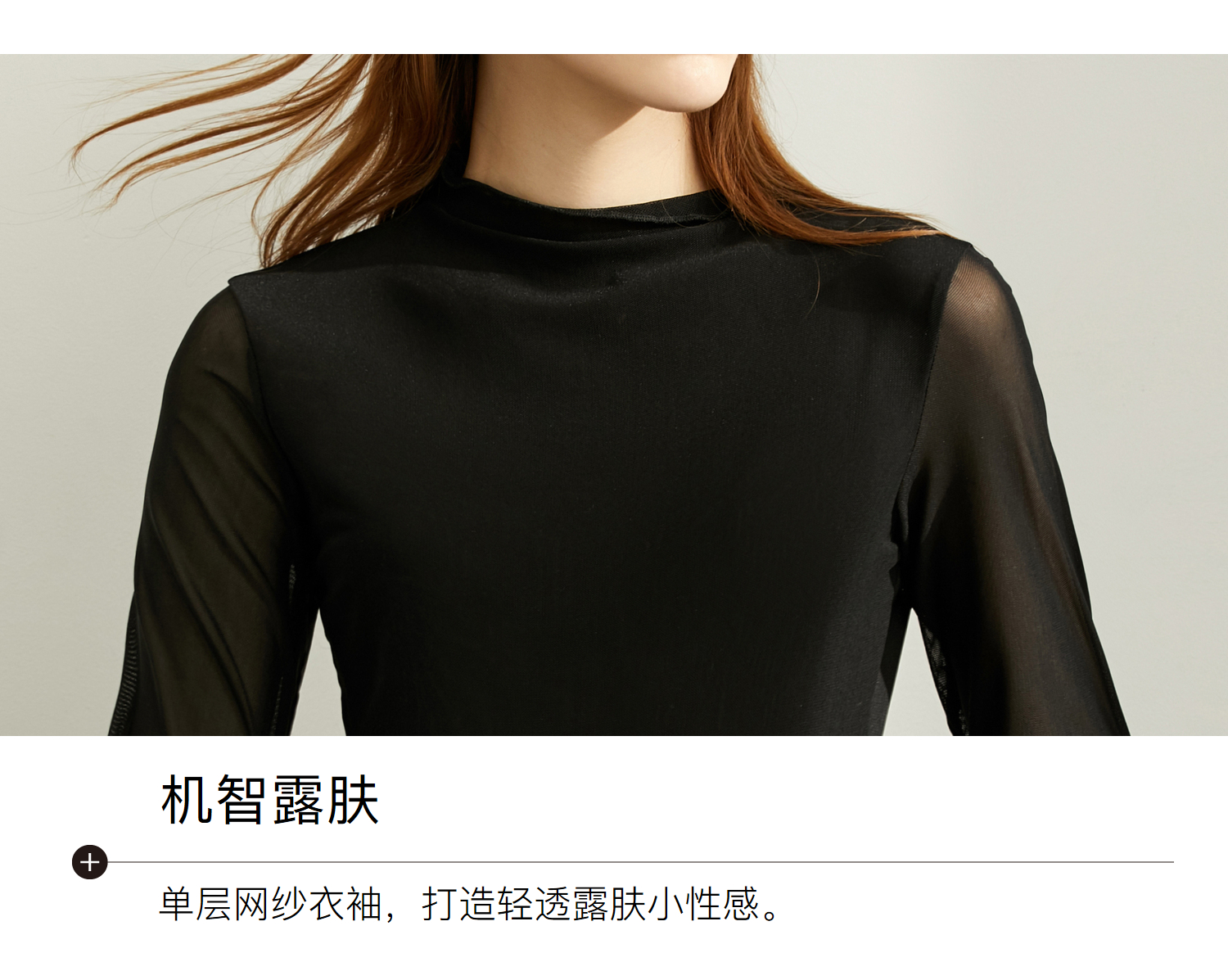 Amii極簡氣質休閑T恤2023秋新款修身半透明長袖百搭黑色米白粉女