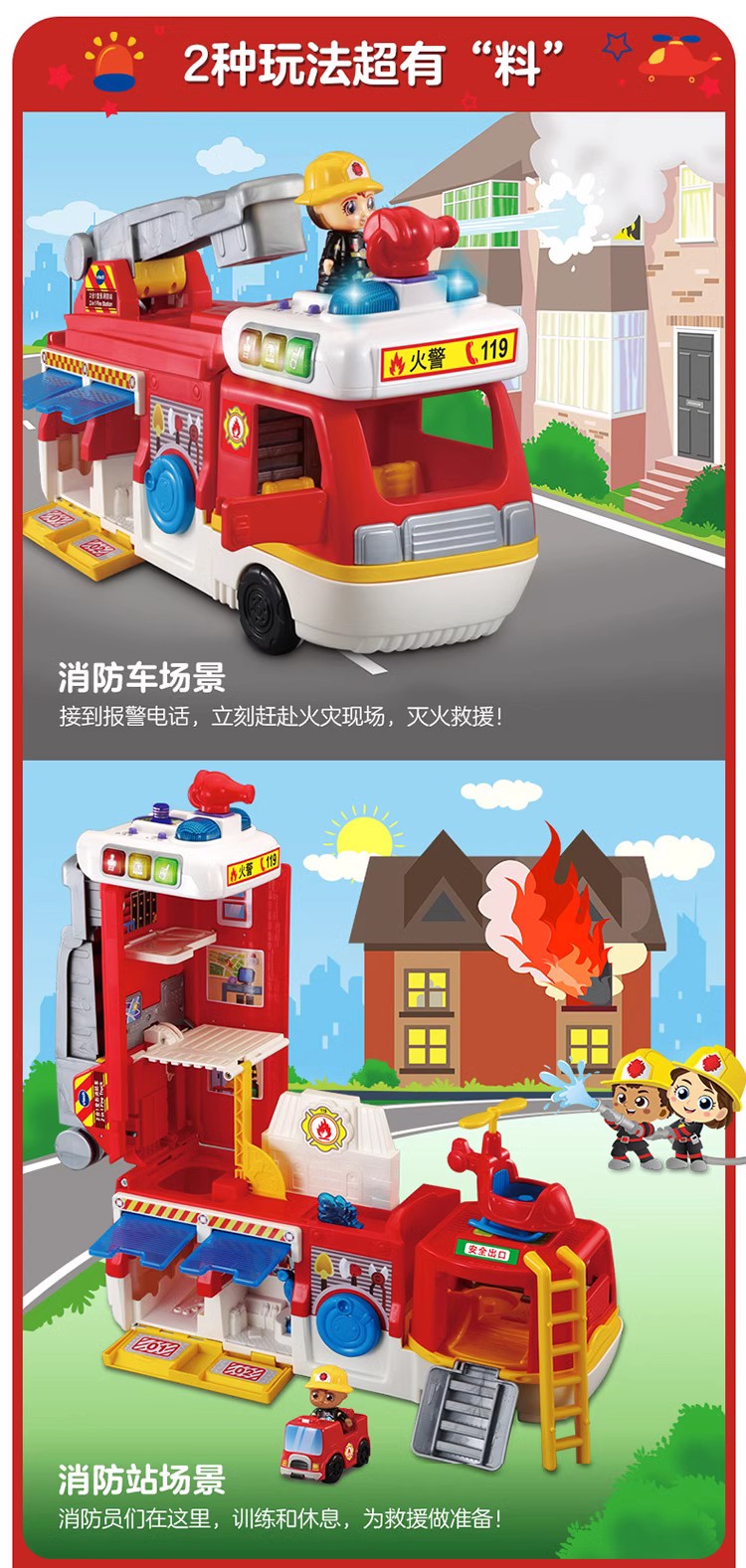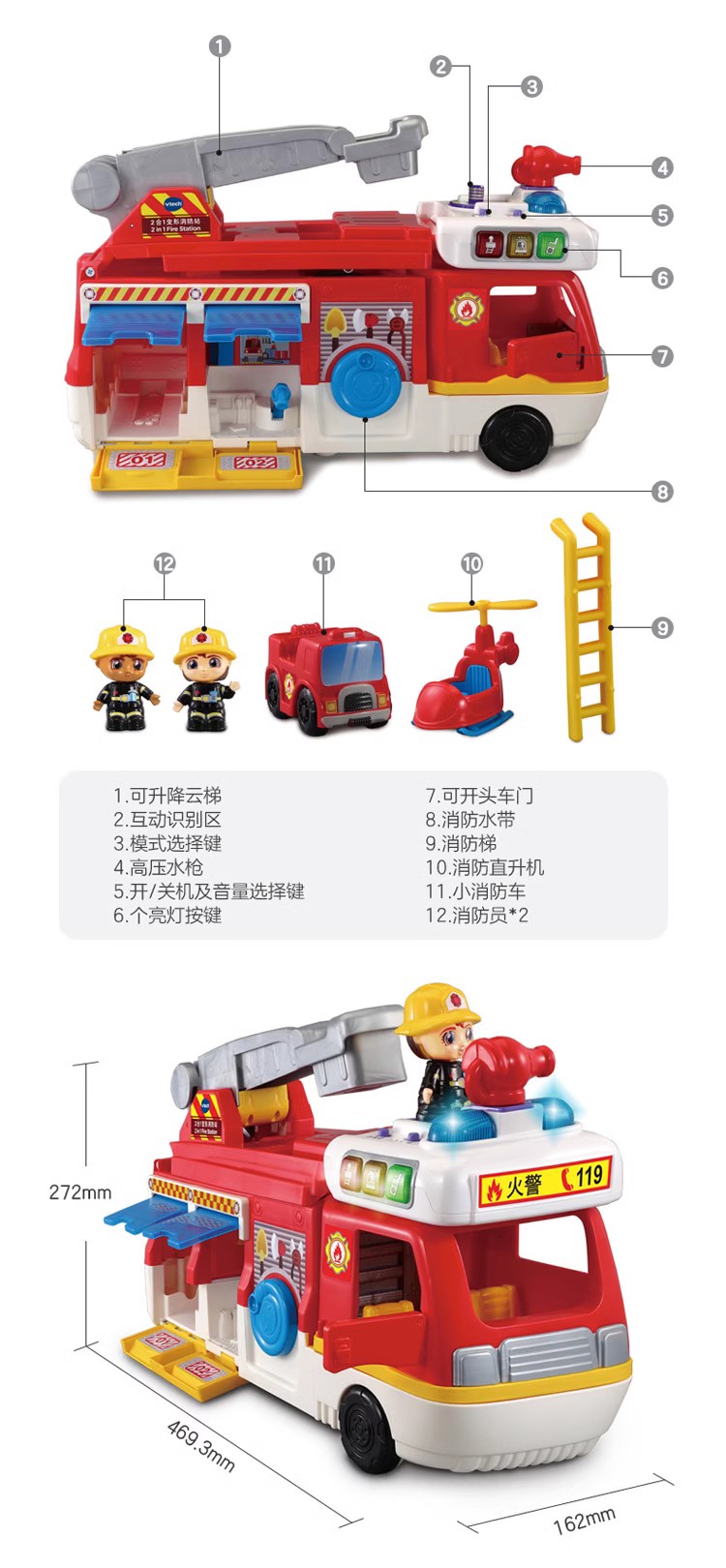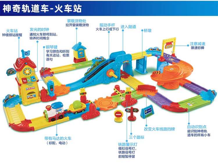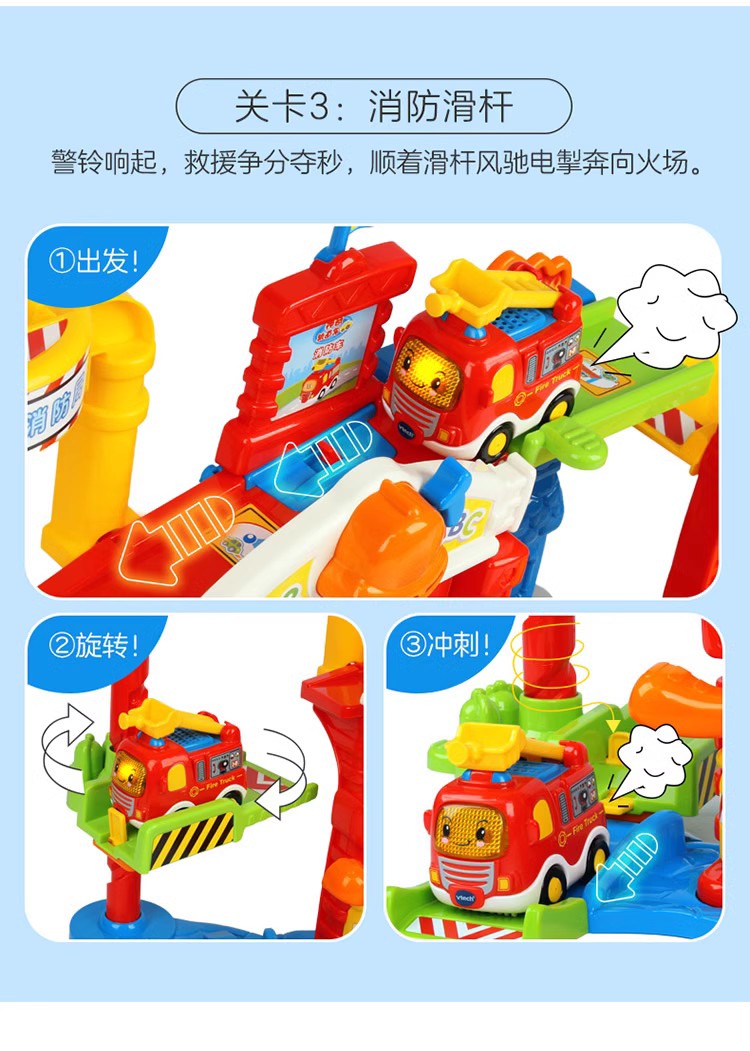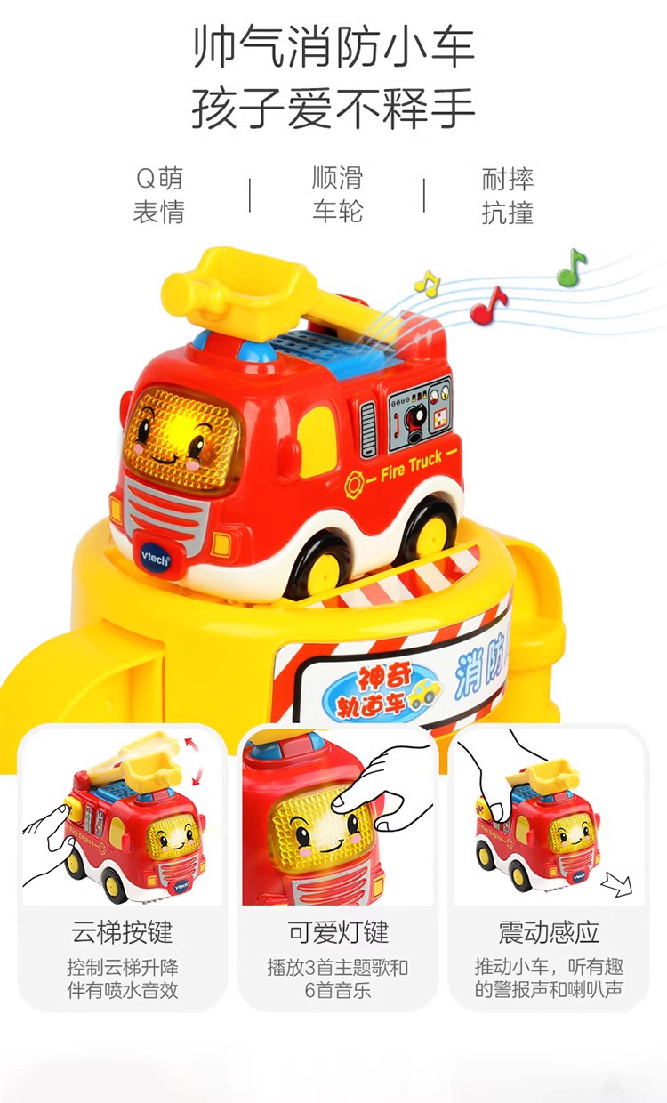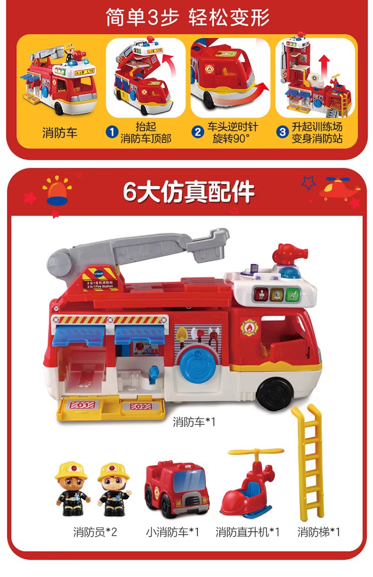 VTech偉易達神奇軌道車趣味吊塔電動火車站起重工程消防車兒童玩