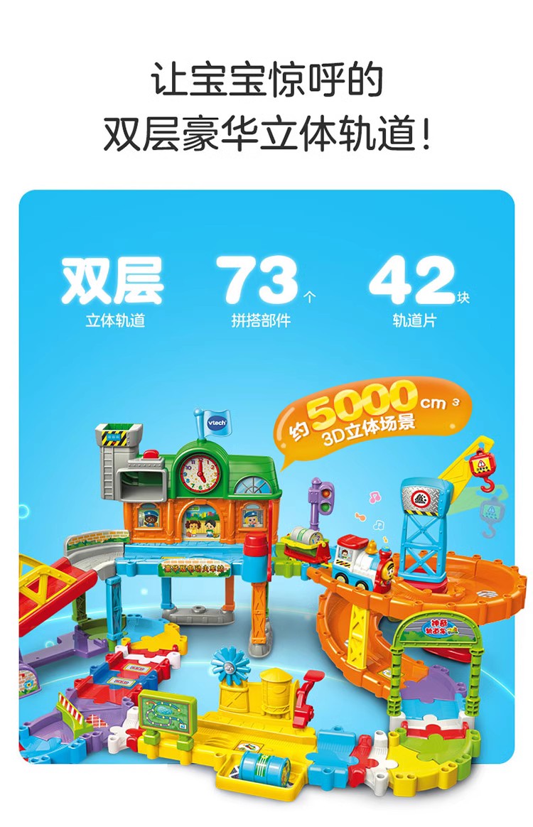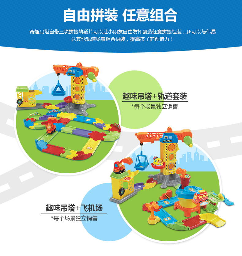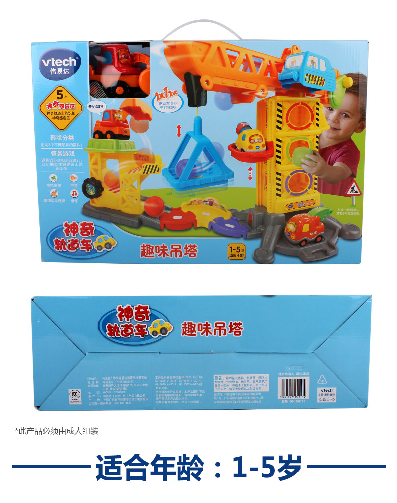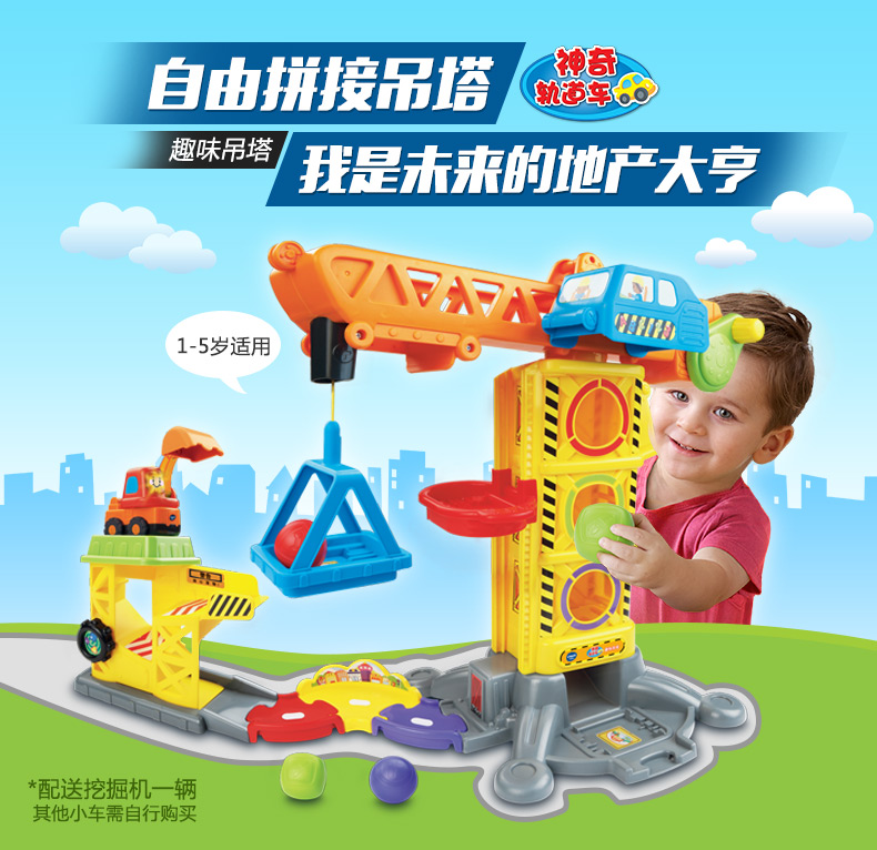 VTech偉易達神奇軌道車趣味吊塔起重機工程建筑場景兒童玩具