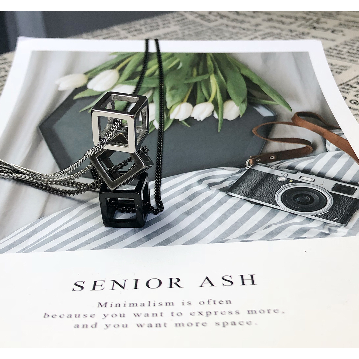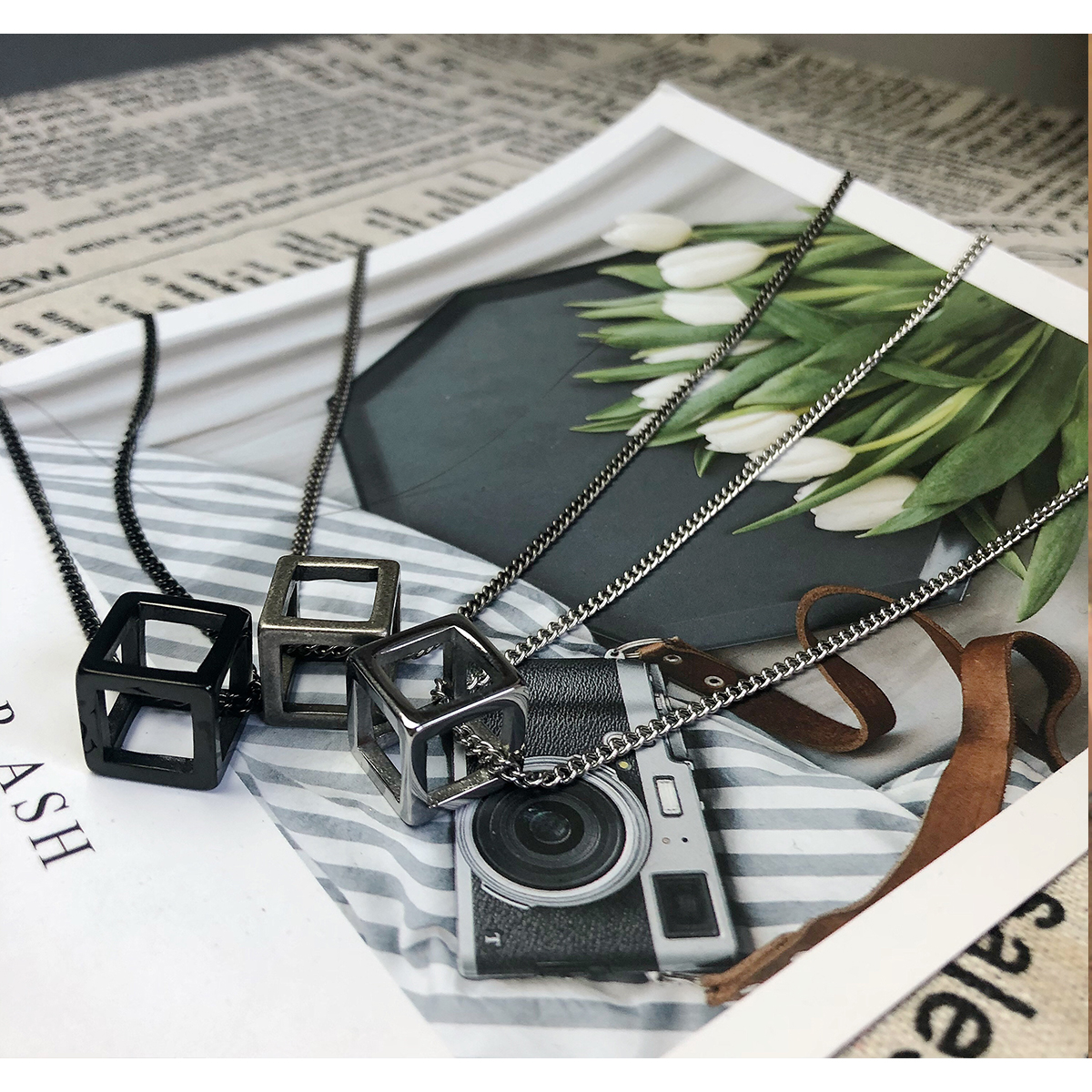 潮牌簡約鏤空正方體男女項鏈魔方獨特百搭吊墜鈦鋼方形冷淡風ins