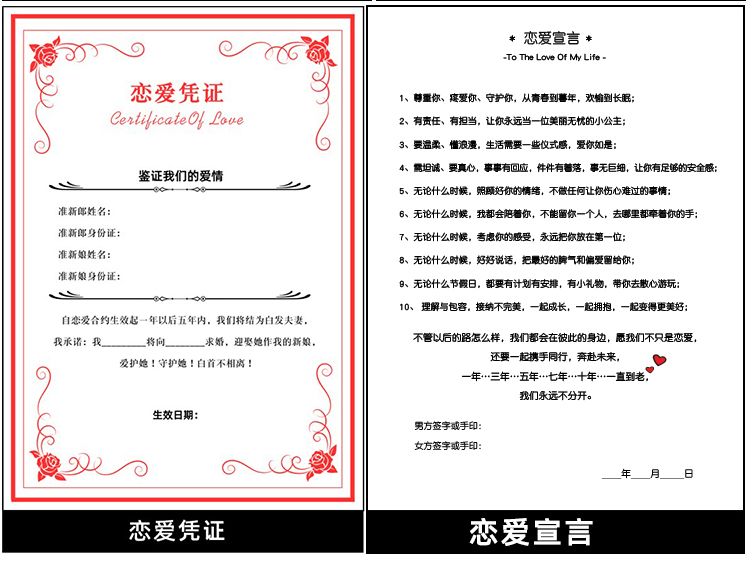 愛情協議書抖音同款創意情侶婚姻承諾送男友生日禮物女生戀愛合約