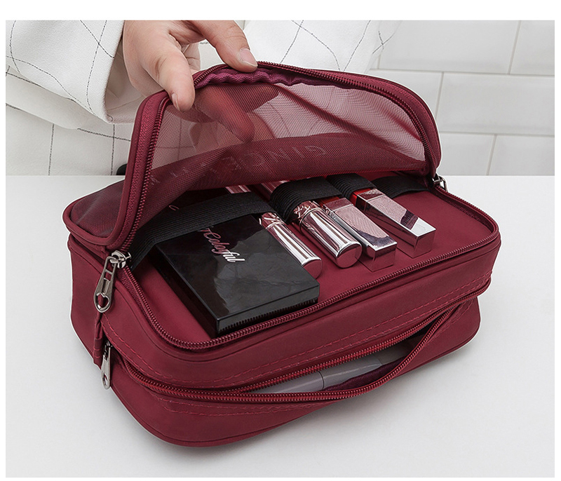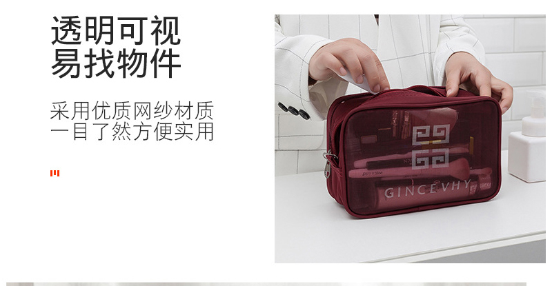 雙層化妝包大容量網紗護膚收納袋男女旅游健身便攜簡約透明洗簌包