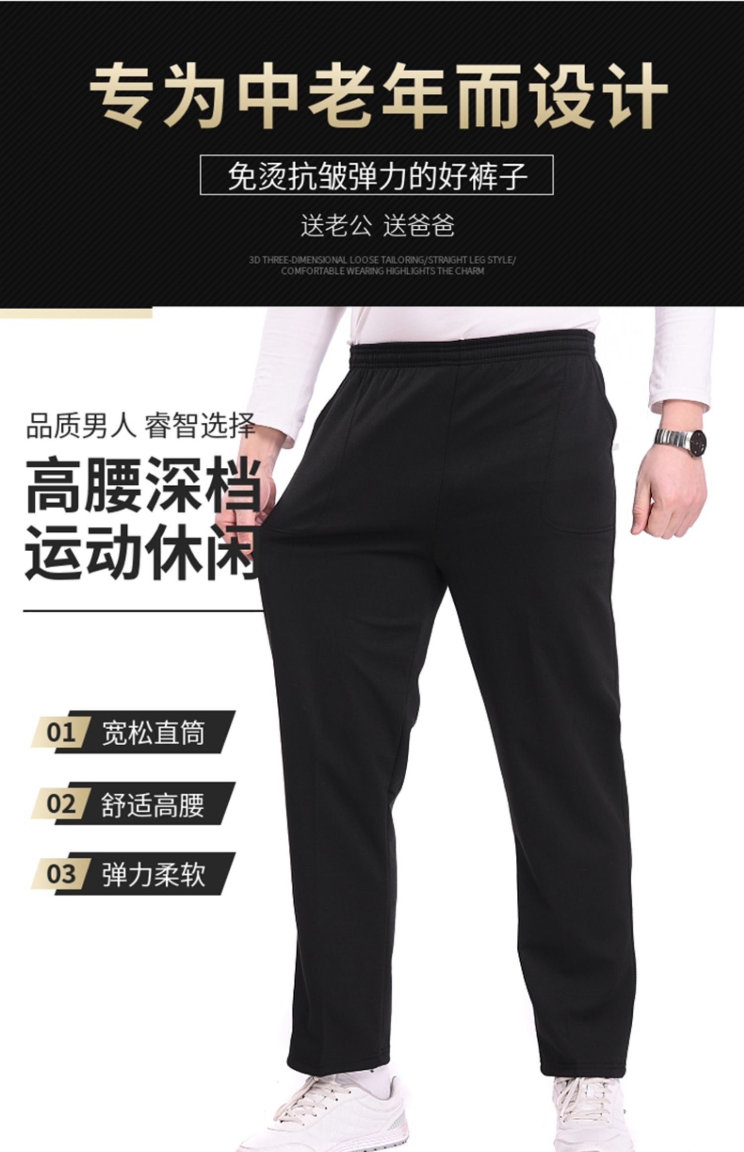 春季爸爸褲中老年男褲春秋款老人松緊腰褲子男中年男士運動休閑褲