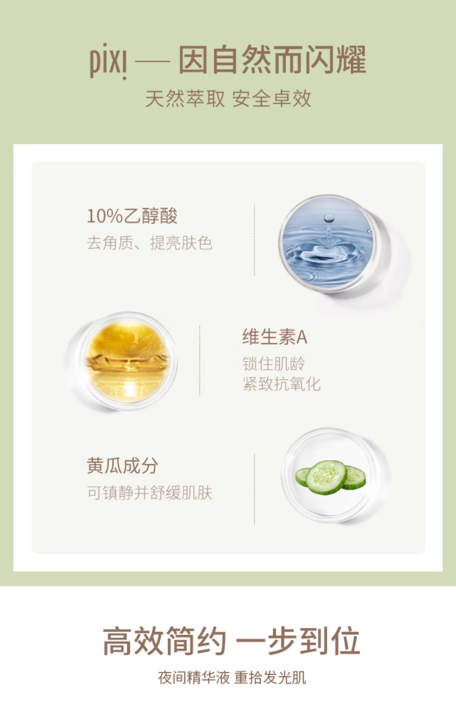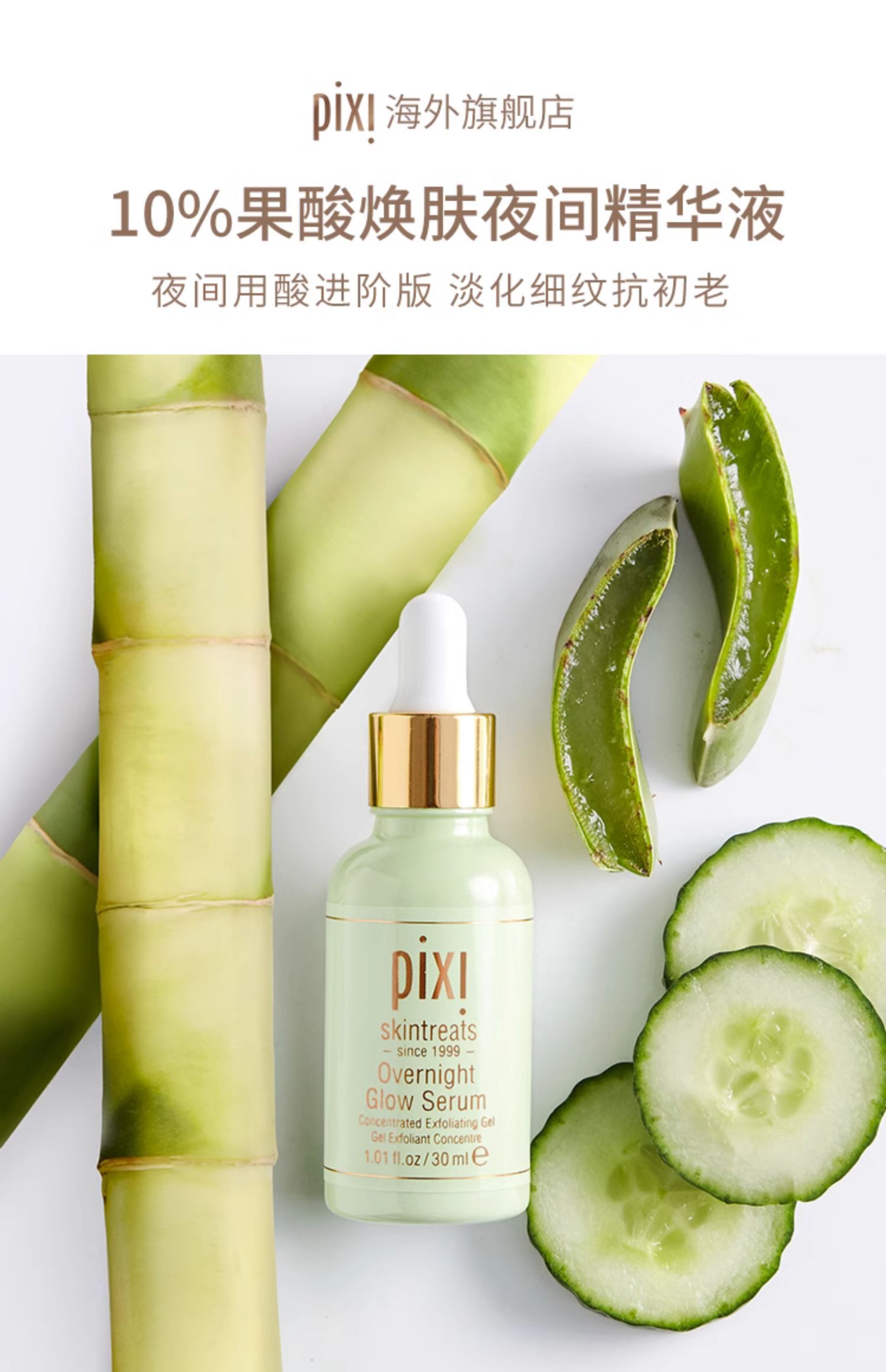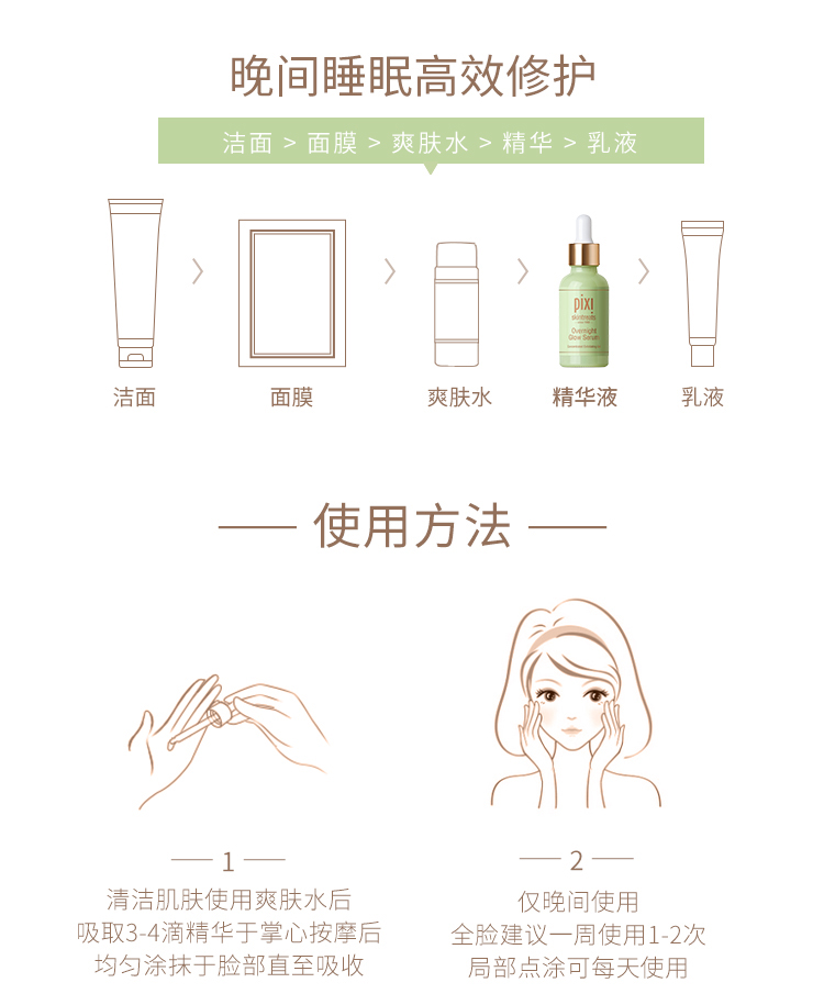 pix10%夜間面部發光果酸精華提亮膚色去閉口淡化細紋抗初老護膚品