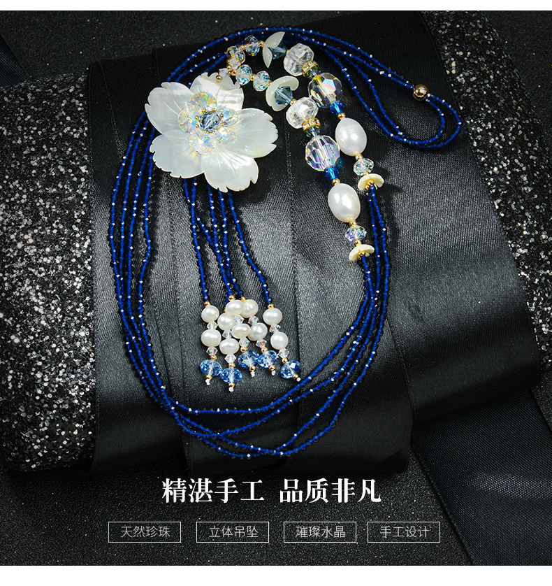 晶柜毛衣鏈長款奧地利水晶藍色貝殼花吊墜流蘇項鏈女簡約氣質禮物