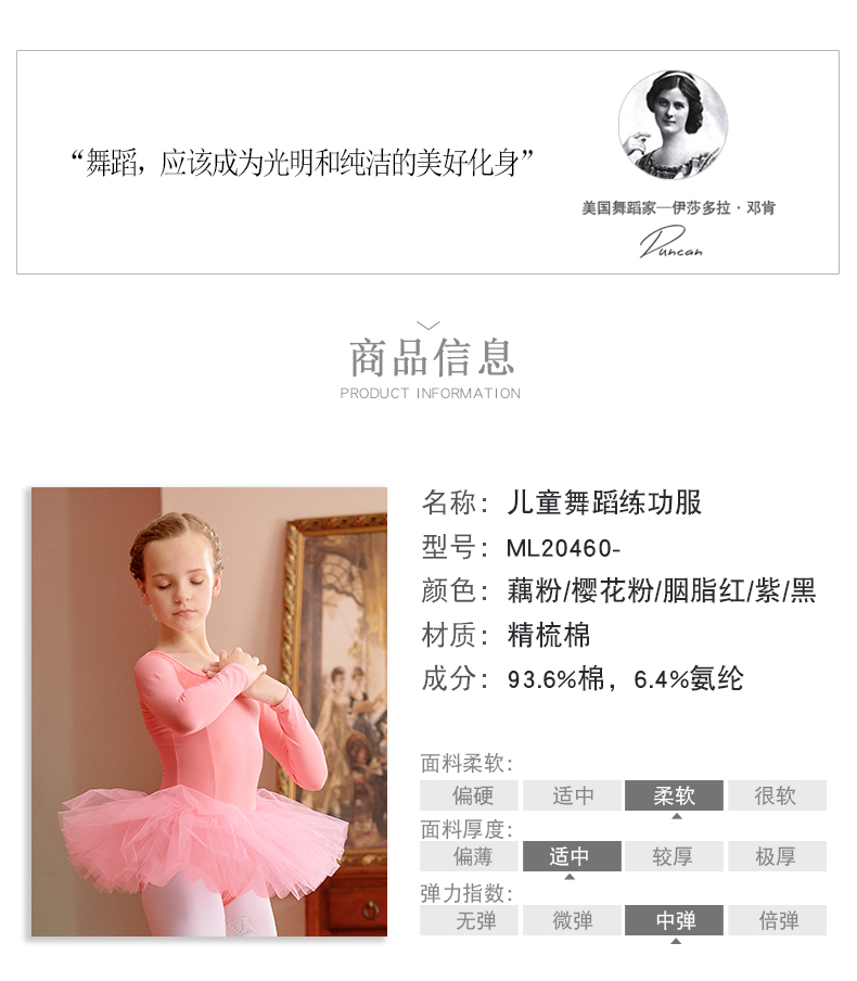 妙靚兒童舞蹈服裝長袖春秋季女童芭蕾舞蹈裙幼兒練功服加厚演出服