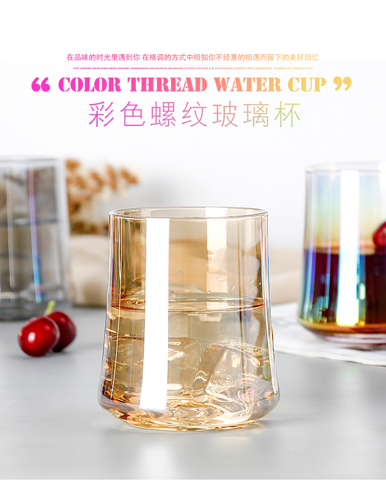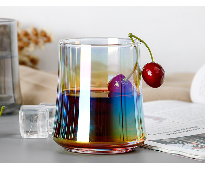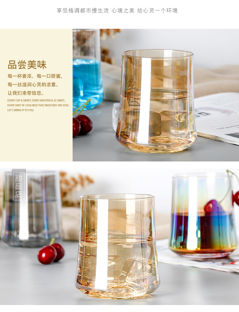 炫彩離子鍍玻璃杯幻彩家用ins風酒杯透明水杯女杯子牛奶杯雞尾酒