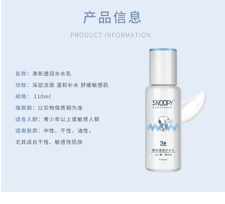 史努比清新水潤乳液青少年兒童初中高中小學生保濕補水小孩護膚品