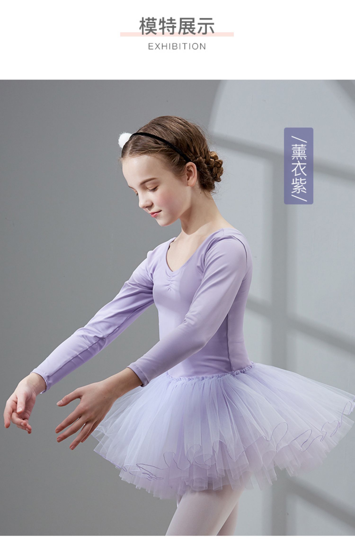 咔萌琪兒童舞蹈服裝長袖芭蕾舞裙