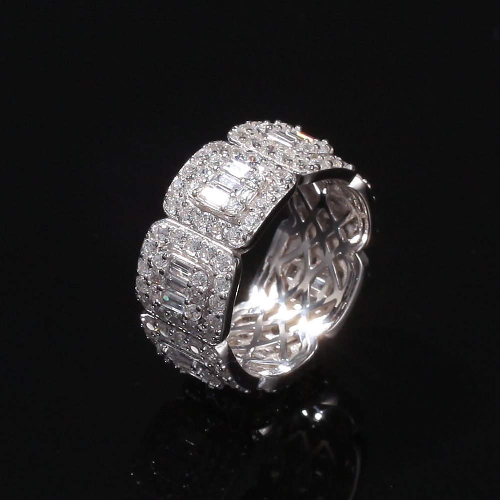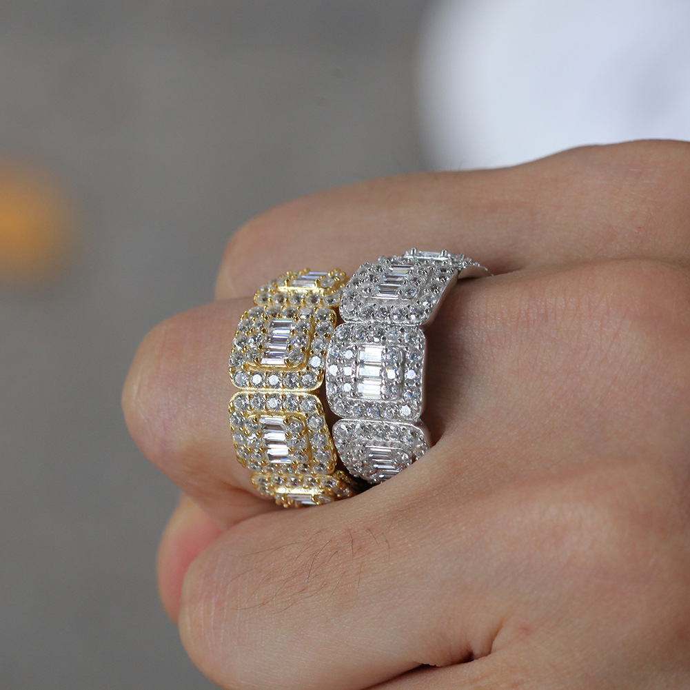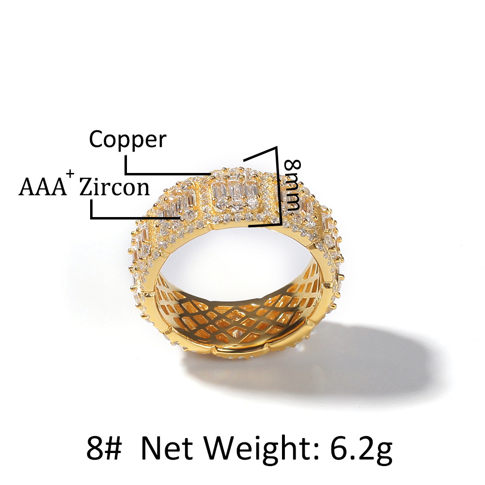 歐美hiphop男女新款微鑲滿鉆戒指復古個性梯方鋯石情侶嘻哈指環潮